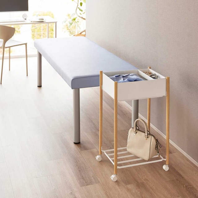 当ショップは国内正規品(新品)のみ取り扱いのため、安心してお買い求め頂けます。 病院やエステサロンなどで便利に使える小物トレー付き収納ワゴンです。キャスター付きでスムーズに移動でき、コンパクトサイズなので、診察室やカウンター周りにもスッキリと設置できます。 上段には衣類を、下段にはバッグを収納でき、バスケットは取り外してそのまま持ち運べます。小物トレーはアクセサリーや貴重品などの収納に便利。木との組み合わせが上品で、馴染みやすいデザインです。 ●商品の情報 ・ブランド:YAMAZAKI(山崎実業)/日本 ・ジャンル:収納ワゴン ・主な素材:スチール 粉体塗装/天然木 ウレタン樹脂塗装(支柱)/ABS樹脂(バスケット、小物トレー)/ナイロン(キャスター) ・生産国:中国 ・サイズ:約W473xD336xH716mm/約W420xD300xH135mm(バスケット1つあたり) ・内寸サイズ:約W408xD288xH125mm(バスケット1つあたり)/約H479mm(下段バスケット使用時の有効内寸 内底から上段棚下まで)/約W95xD282xH31mm(小物トレー) ・重量:約5450g ・耐荷重:棚1段あたり6kg、小物トレー1kg(静止荷重) ・付属品:六角レンチ/スパナ ・その他:お客様組立て品となります。 ●ご購入前にお読みください ・ご購入後の返品や交換はできません。 ・撮影環境や閲覧環境により、写真と色合い等が異なる場合がございます。 山崎実業 YAMAZAKI RIN 小物トレー付き収納ワゴン 2段 小物トレー付き収納ワゴン 2段 リン rin 収納ワゴン スクエア トレー付き バスケット キャスター付き コンパクト 木製 便利グッズ アイデア商品 アイデア収納 収納アイデア 木目 天然木 tower TOWER タワー 新築祝い 引っ越し祝い 引越し祝い ギフト プレゼント 誕生日 贈り物 女性 男性 インテリア デザイナーズ デザイン おすすめ ベーシック シンプル おしゃれ 人気ブランド 新品 取扱店 正規品 正規販売店 正規取扱店 個人・法人対応 適格請求書発行事業者 インボイス登録済み セレクトショップ
