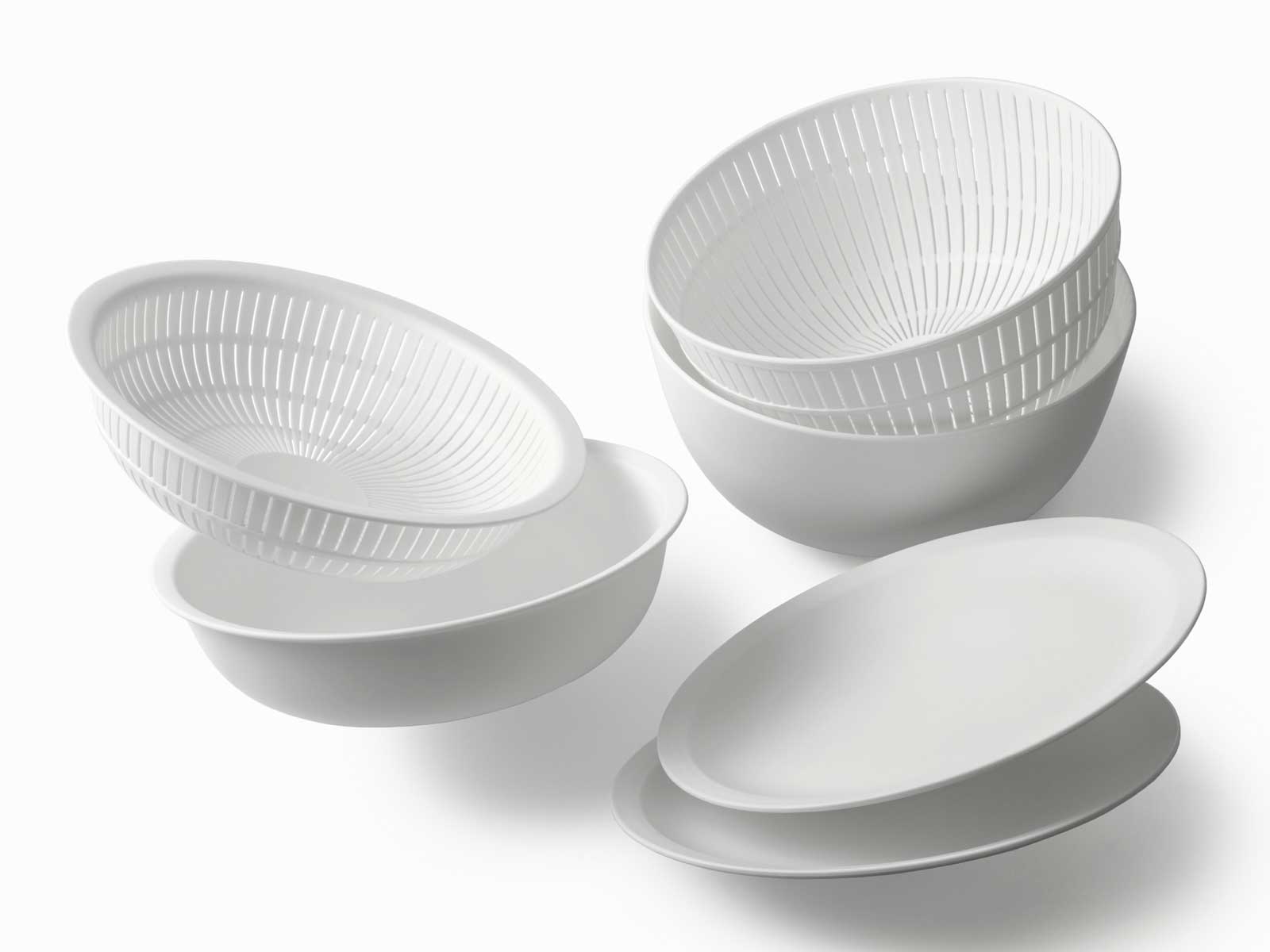 ・主な素材:熱可塑性エラストマー、ポリプロピレン(ザル)/ポリプロピレン(ボウル、プレート)