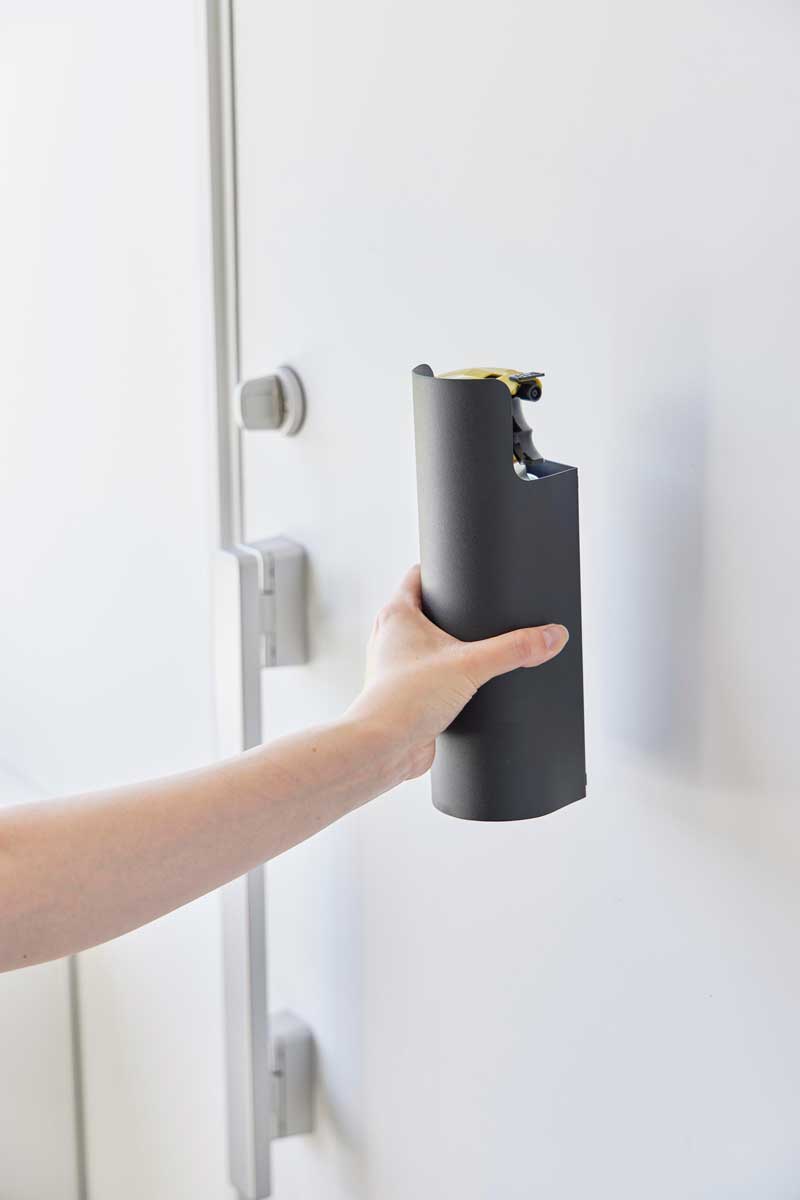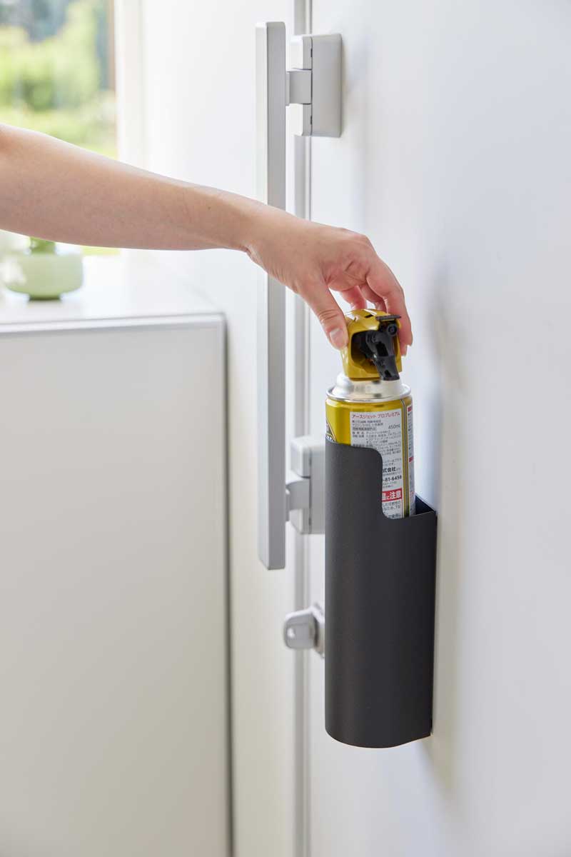 マグネットで玄関扉や冷蔵庫横、洗濯機横に簡単取り付け!生活感の出てしまう殺虫剤や消臭、防水スプレー、潤滑剤など様々な種類のスプレーを隠して収納できます。
