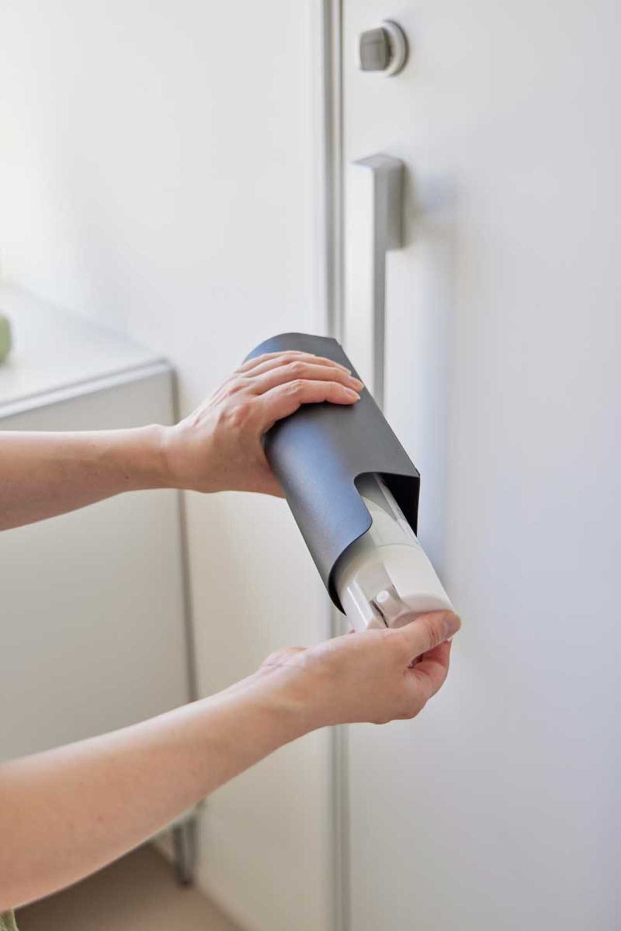 スプレーが取り出しにくい場合は、下から指で押し上げると簡単に取り出すことができます。使いたい時にサッと取り出しやすいので懐中電灯の収納にもおすすめです。