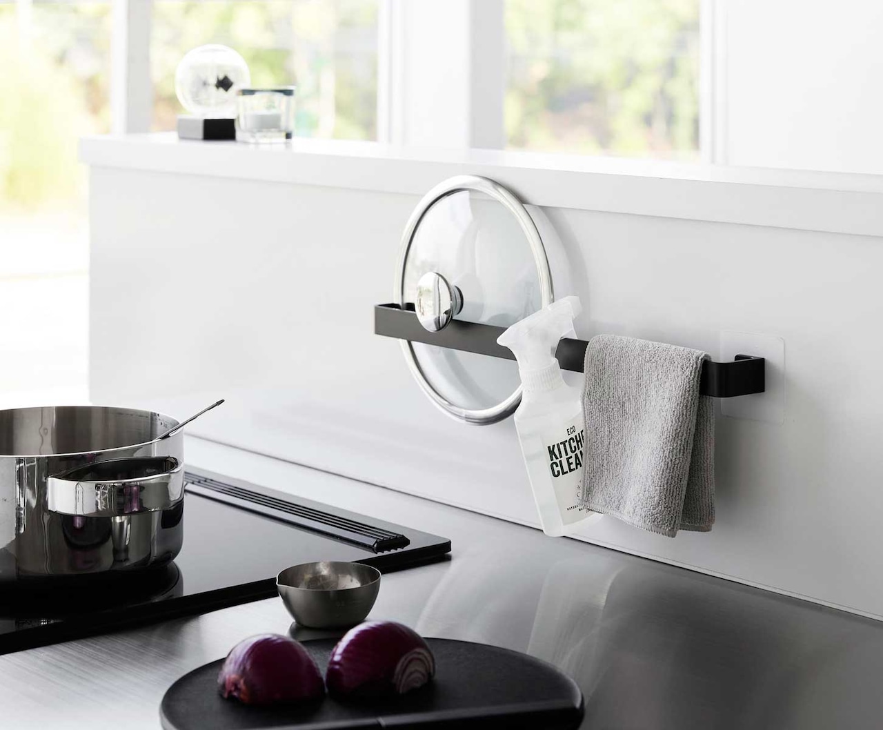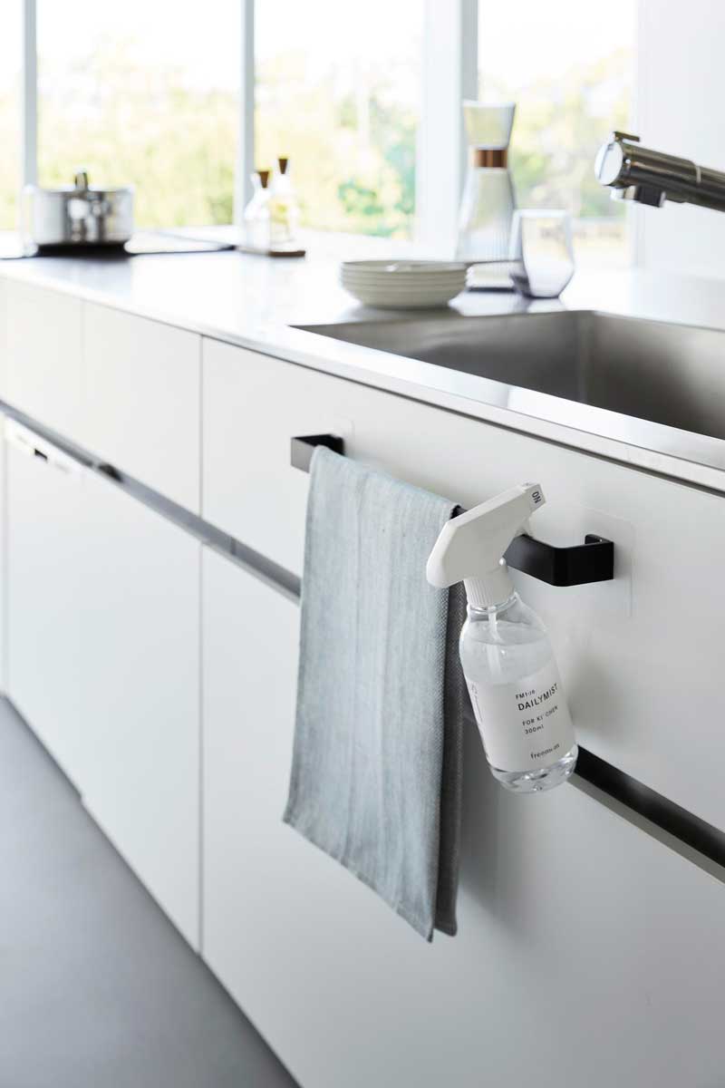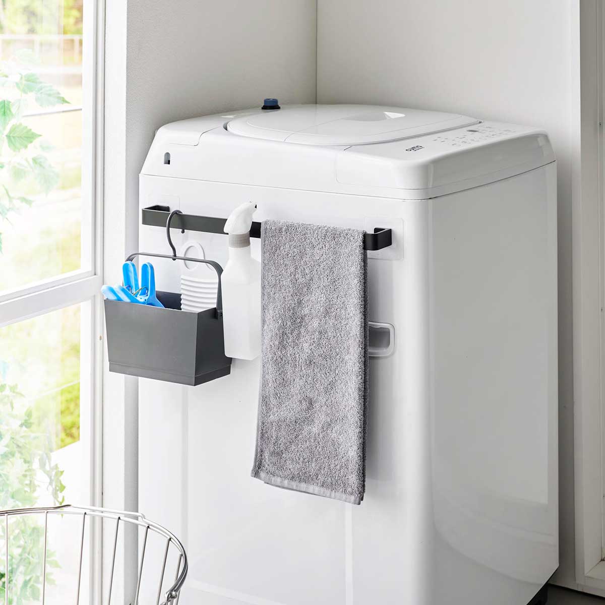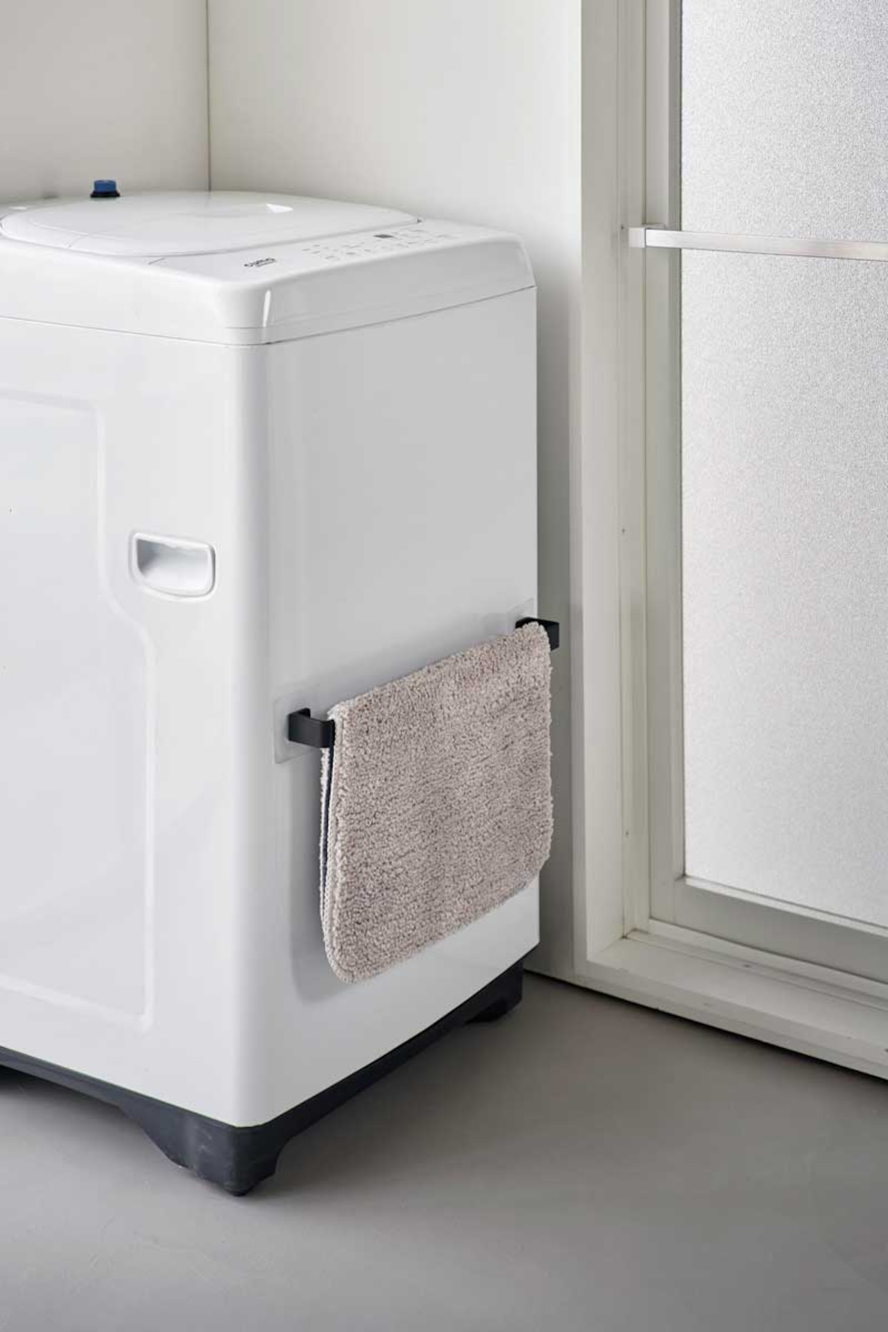 洗濯機に取り付けてバスマットの収納として、洗面所では小物掛け収納として、キッチンパネルに設置して布巾・鍋蓋・スプレーを掛けて収納するなど、設置場所を選ばずさまざまな場所で手軽に使えます。