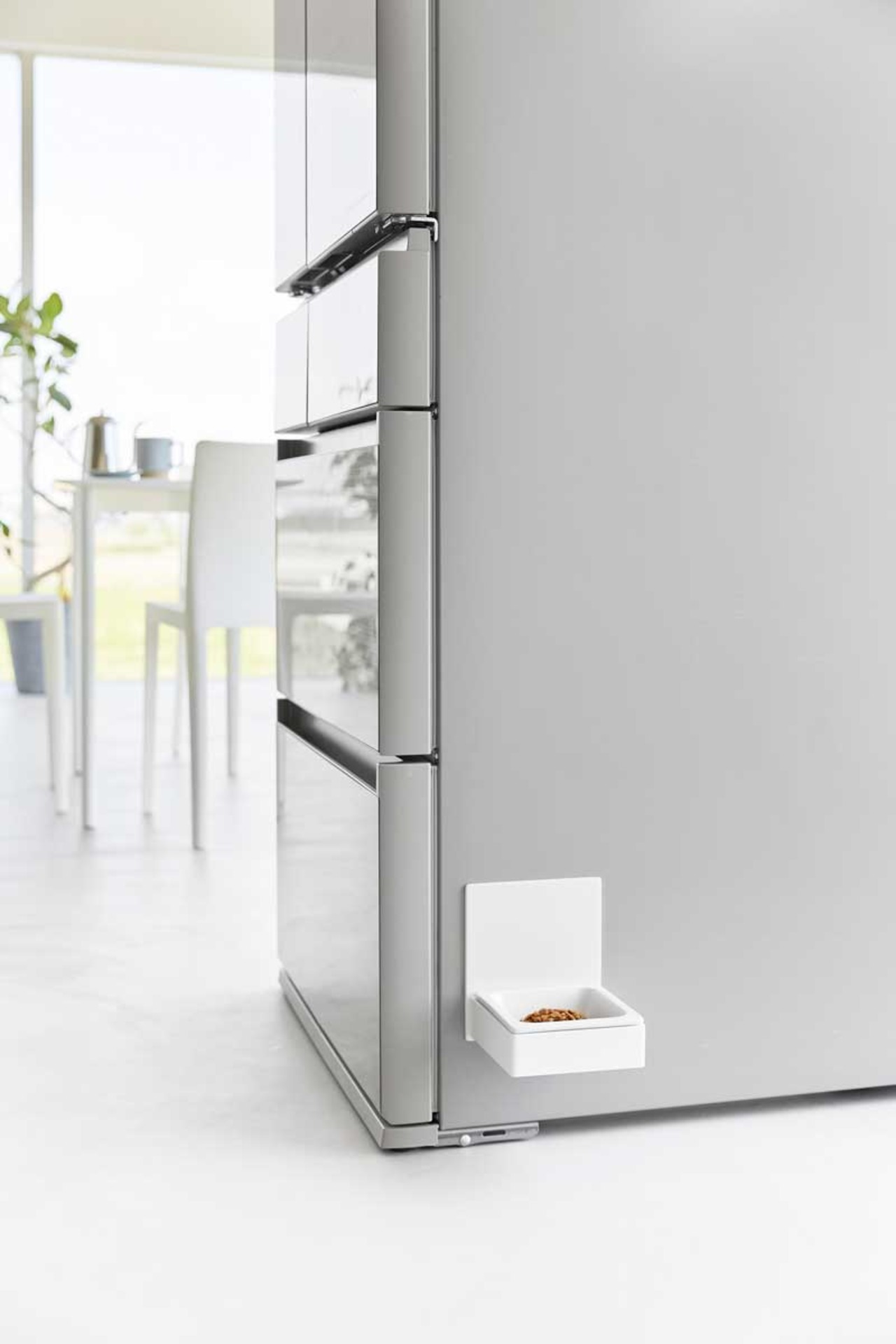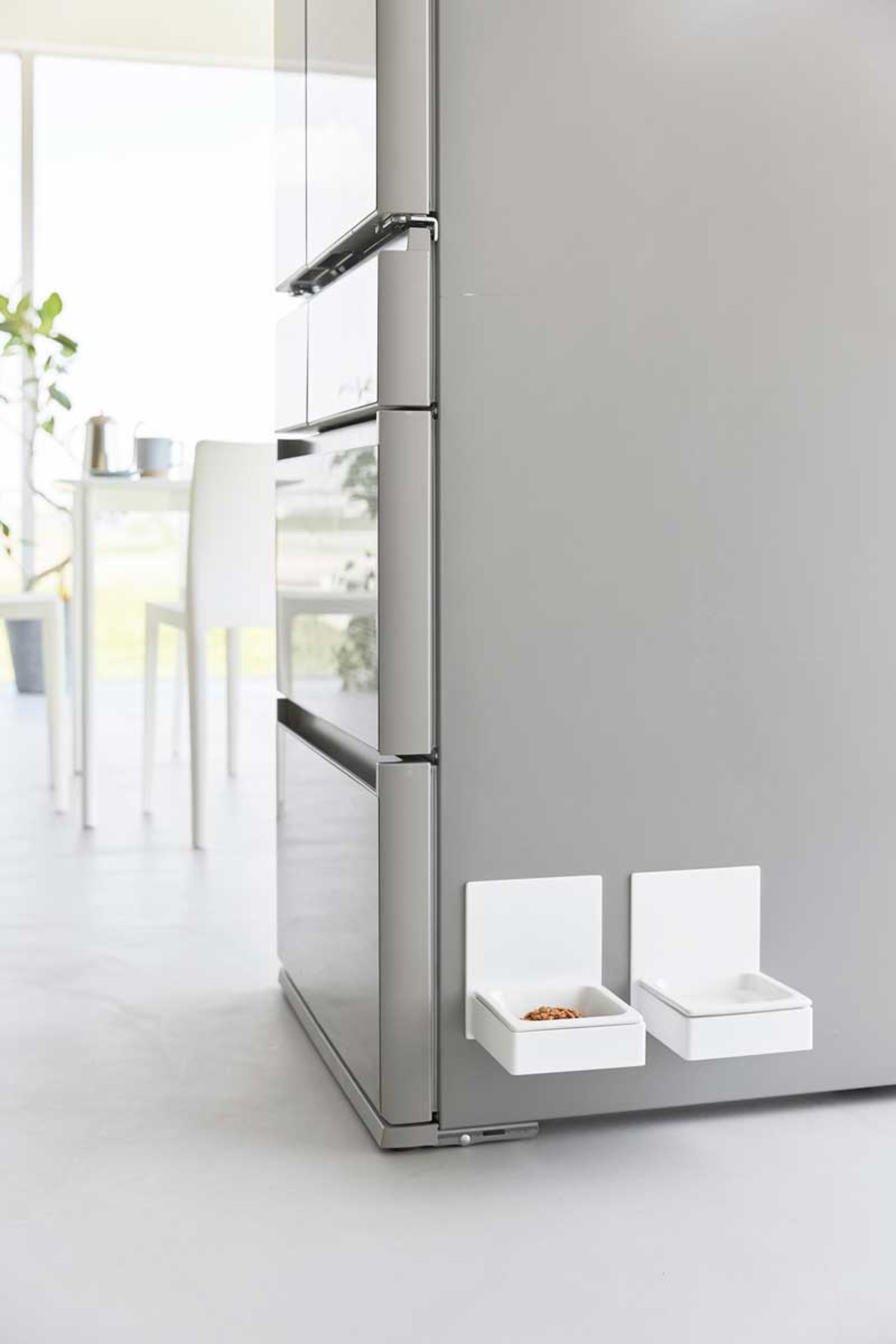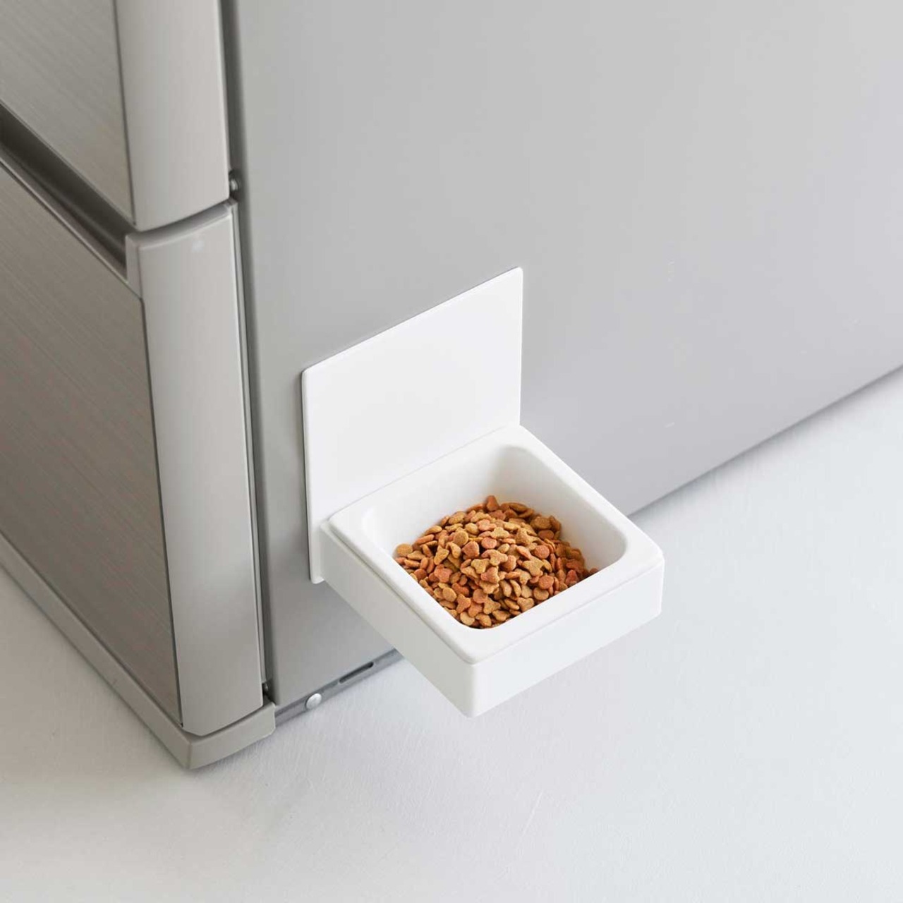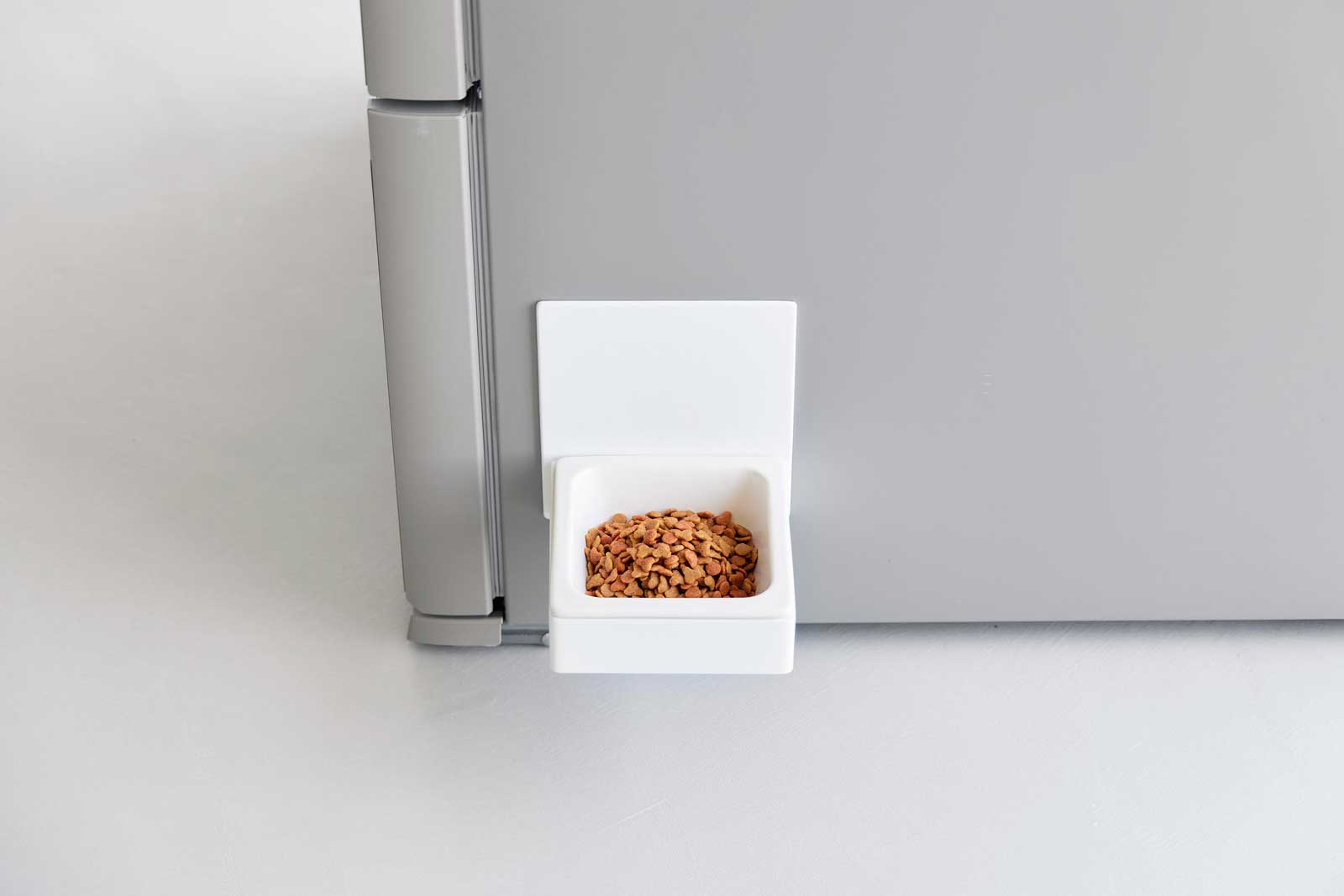 ペットが食べやすい位置にマグネットで取り付けることができるペットフードボウル。冷蔵庫やウォーターサーバー横に取り付けるとお水の入れ替えも簡単です。