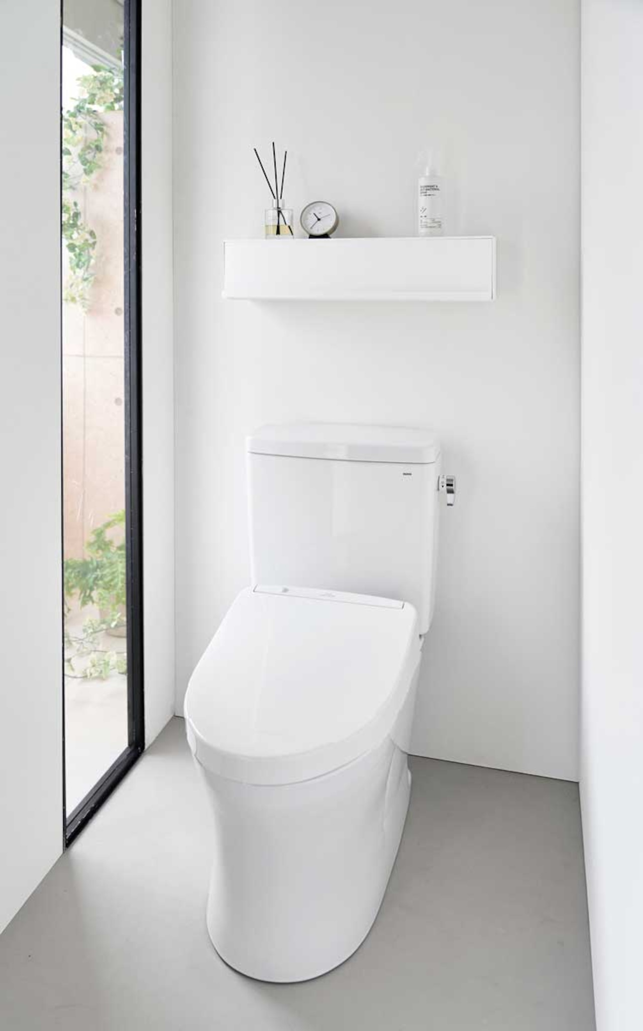 幅60cmのワイドサイズで、トイレットペーパーやサニタリーなどのストックをスッキリ隠して大容量収納できます。扉は開閉がスムーズなフラップ式で、天板は小物置きとしても活用できます。