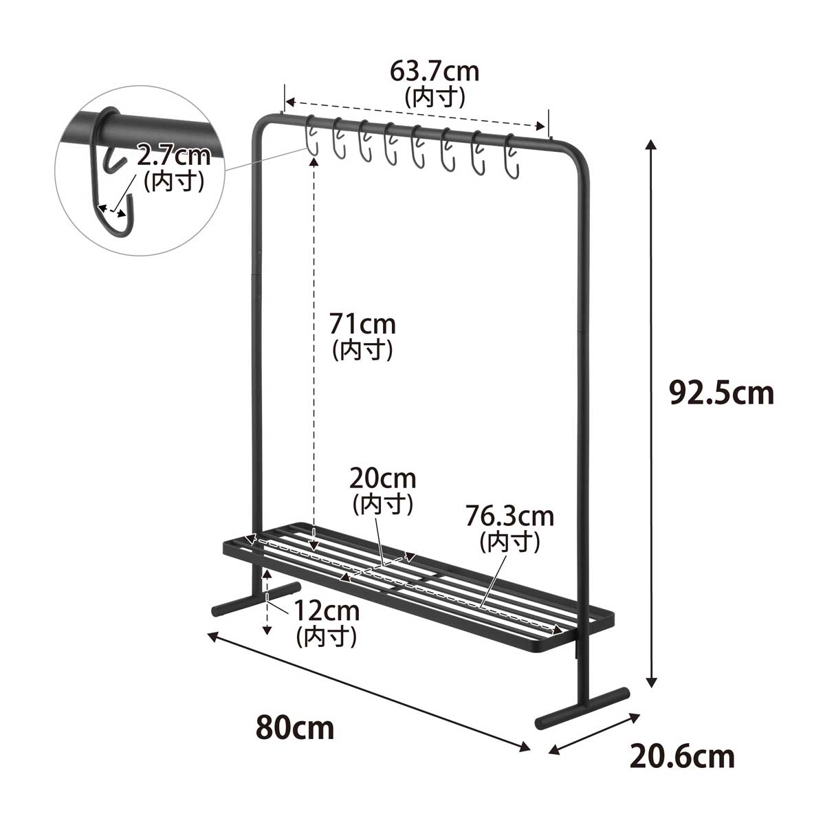 ・内寸サイズ:約W763xD200mm(棚)/約H710mm(フック下から棚上)/約H120mm(棚下)/約27mm(フック開口幅)