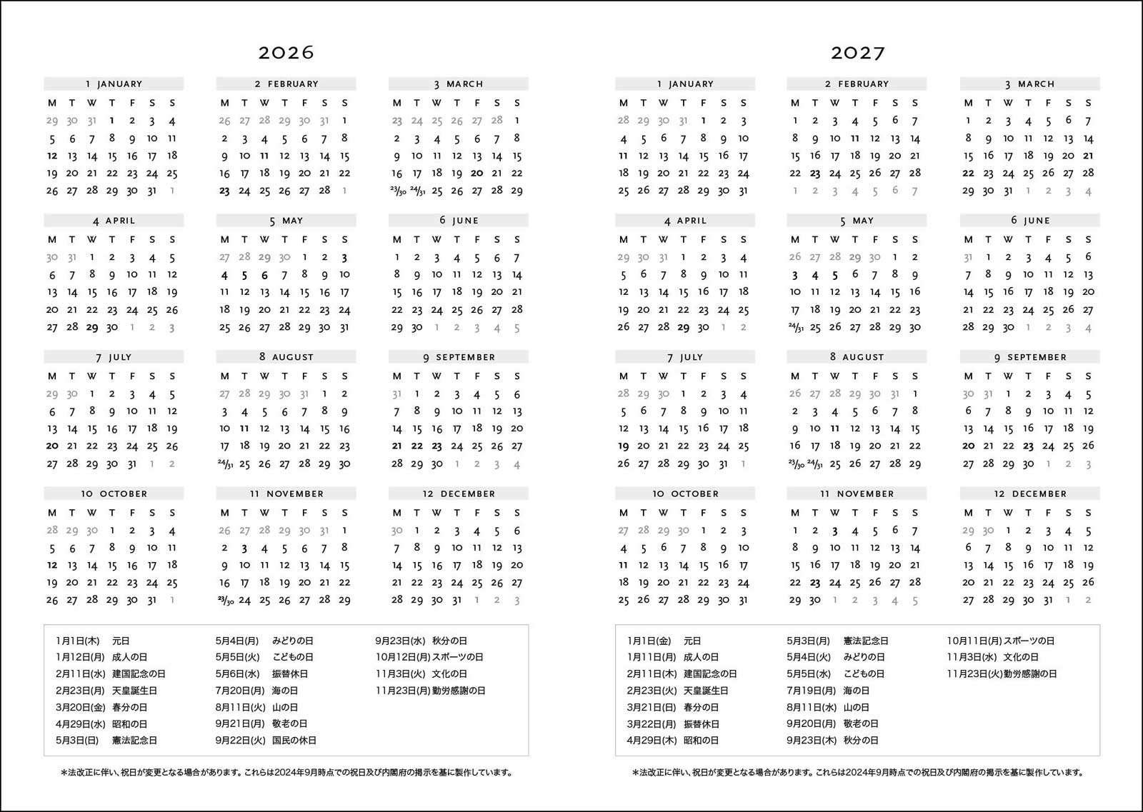 ・その他:日本の祝日、六曜、月齢などが日本語で掲載された日本仕様となっています。
