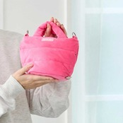 軽さ、やわらかさ、ふわふわ感。その秘密は、中に入ったダウンとフェザー。どこでもかわいく持ち歩けるミニミニサイズ。ポップカラーがかわいいカラフルな色合いと、遊び心のあるデザインで、毎日をちょっと特別にしてくれます。内側でつながったスマートな外ポケットは、左右どちらからも中身を出し入れできる便利なつくり。