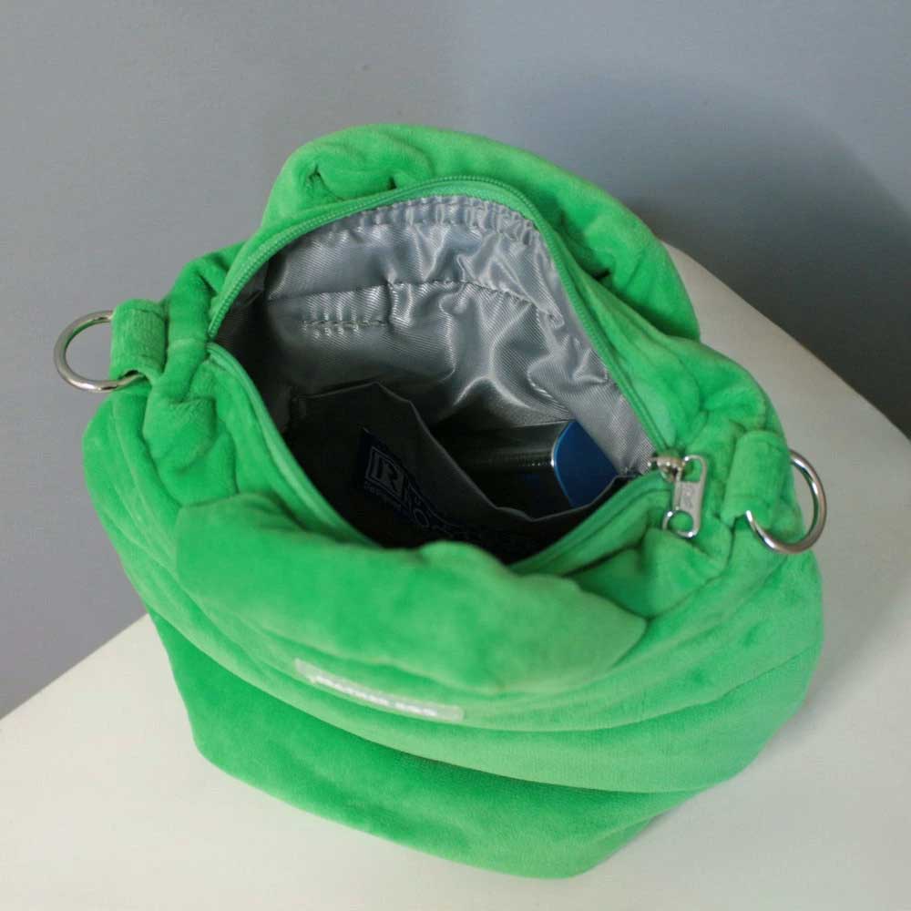 軽さ、やわらかさ、ふわふわ感。その秘密は、中に入ったダウンとフェザー。どこでもかわいく持ち歩けるミニミニサイズ。ポップカラーがかわいいカラフルな色合いと、遊び心のあるデザインで、毎日をちょっと特別にしてくれます。内側でつながったスマートな外ポケットは、左右どちらからも中身を出し入れできる便利なつくり。