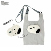 スヌーピーフェイスのポケットがポイントのショッパー型デザインのトートバッグ。ポケットをひっくり返しながら本体を収納すると、おすましフェイスから変身。コンパクトに持ち運びができちゃいます。2つの表情が楽しめるパッカブルショッパーです。長財布、スマホ、ボトル、A5ノート、ポーチなどが収まります。