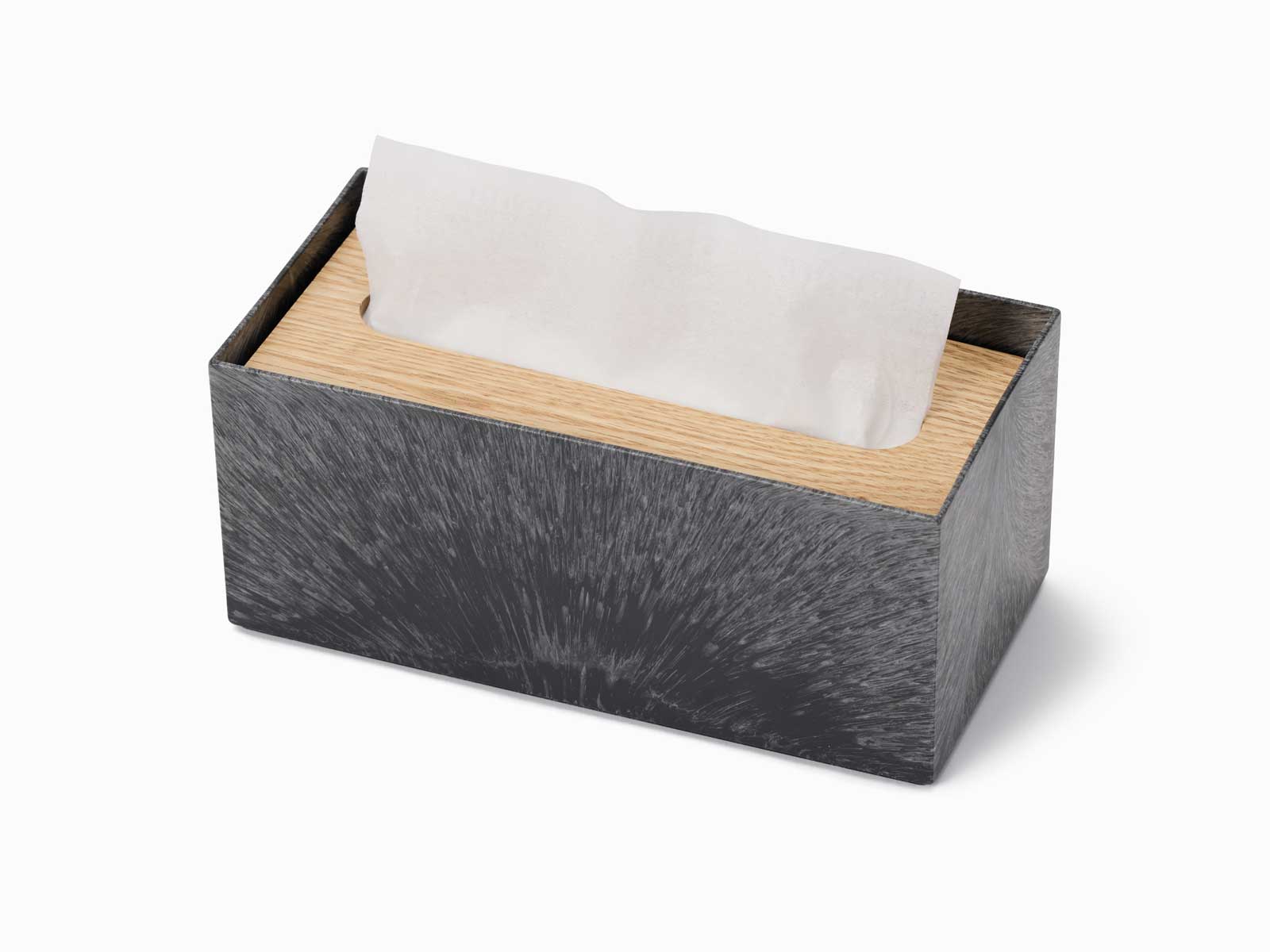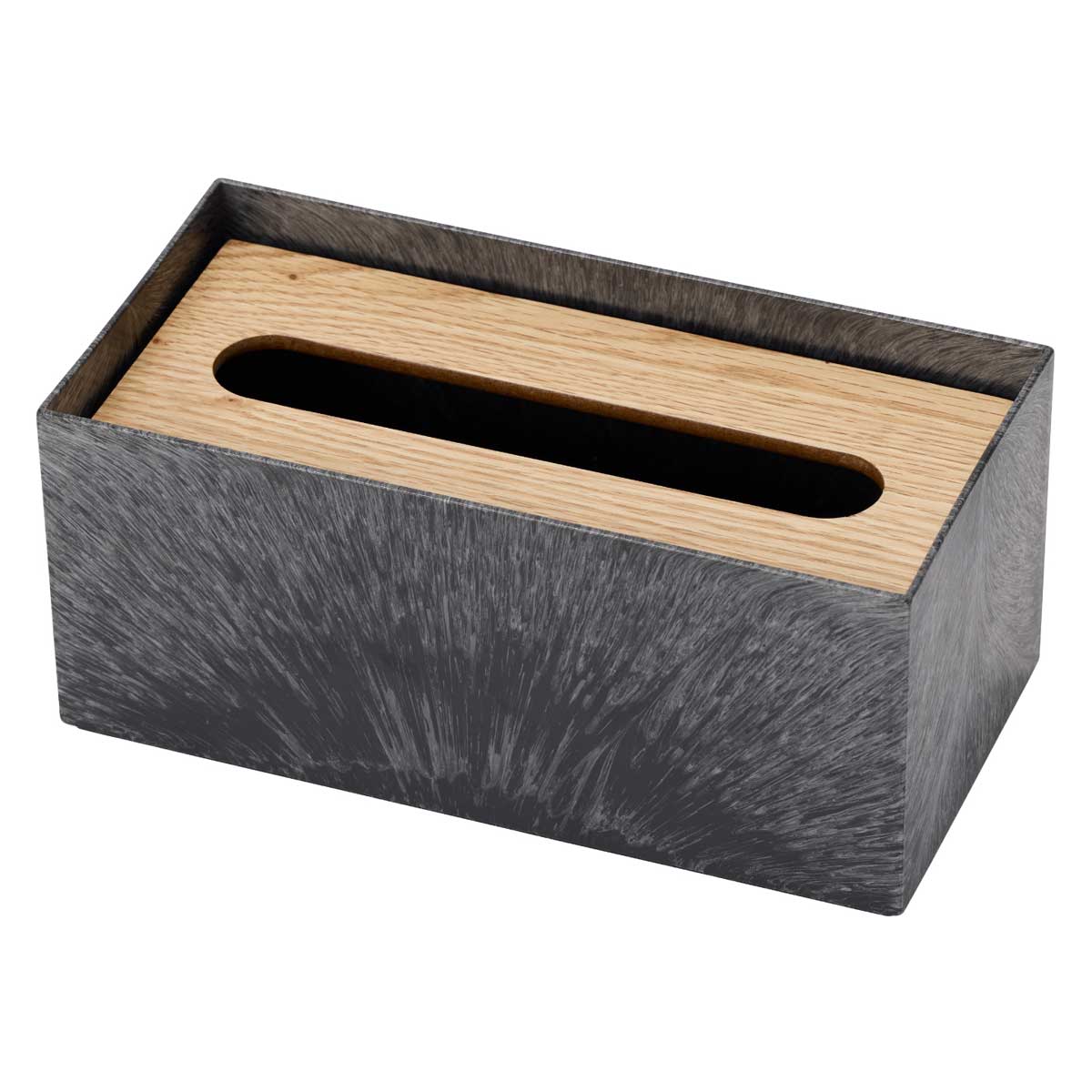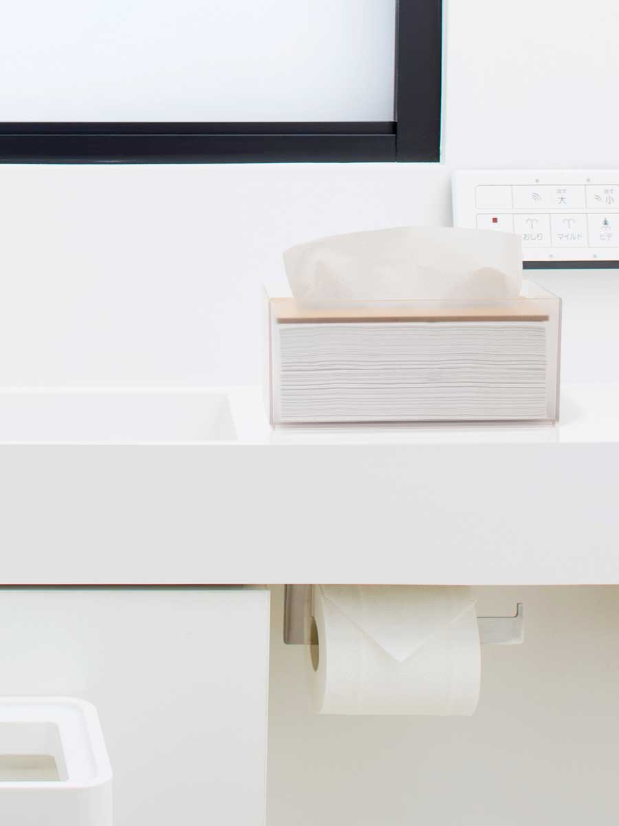 プラスチック本体と木蓋の異素材ミックスが目を引くティッシュボックスです。天然木を使ったリバーシブル木蓋はインテリアに合わせて使い分けができます。ボックスティッシュ、ソフトパックどちらにも対応したサイズ感です。