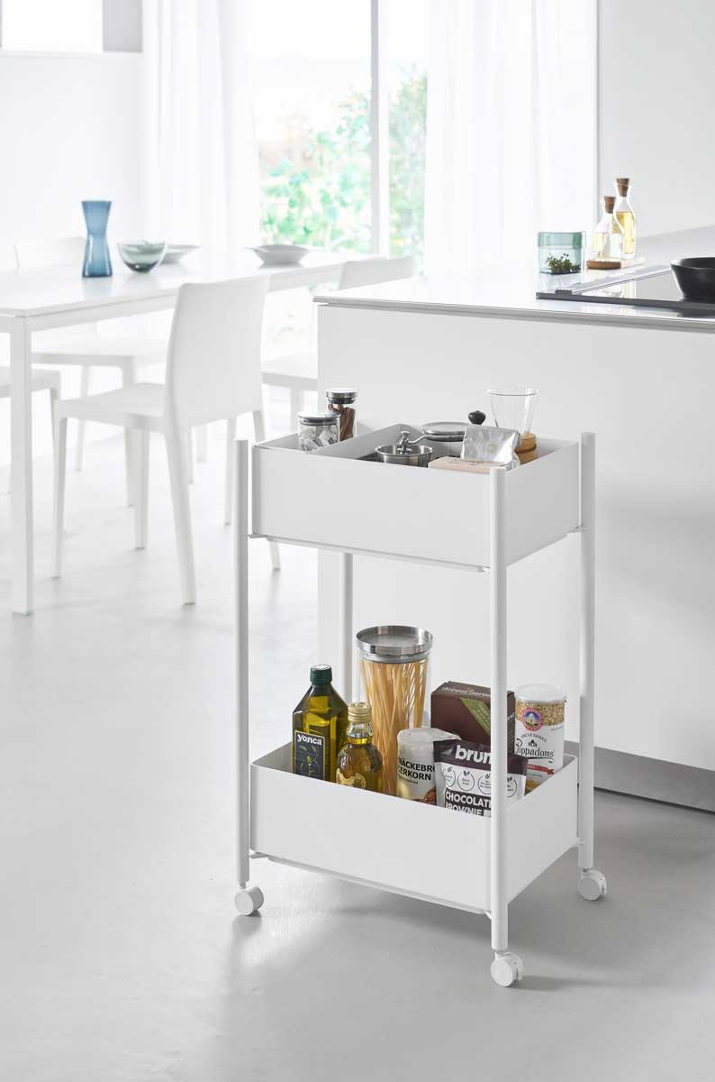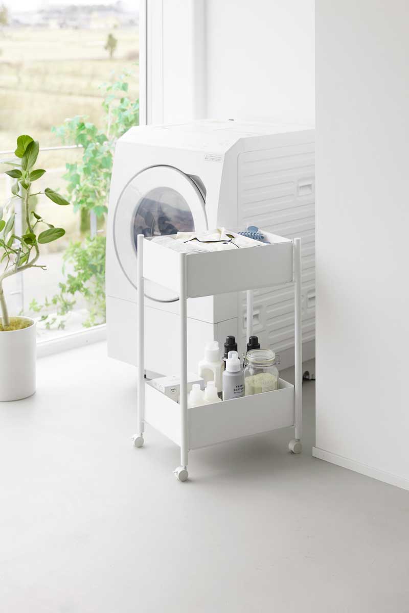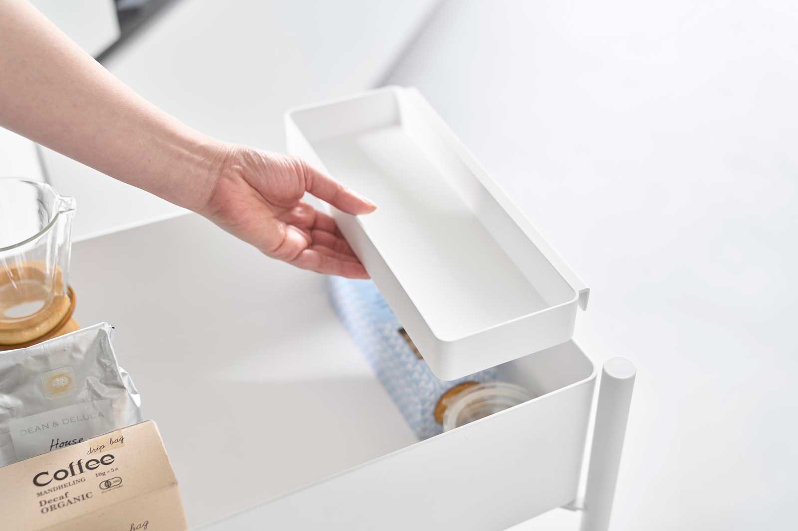収納ワゴン キャスター付き 山崎実業 tower タワー 小物トレー付き収納ワゴン 2段 10183 ホワイト