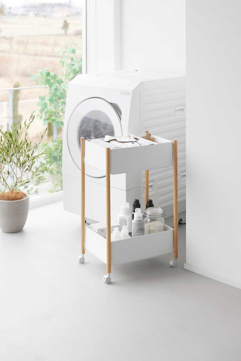 収納ワゴン キャスター付き 山崎実業 RIN リン 小物トレー付き収納ワゴン 2段 10180 ナチュラル
