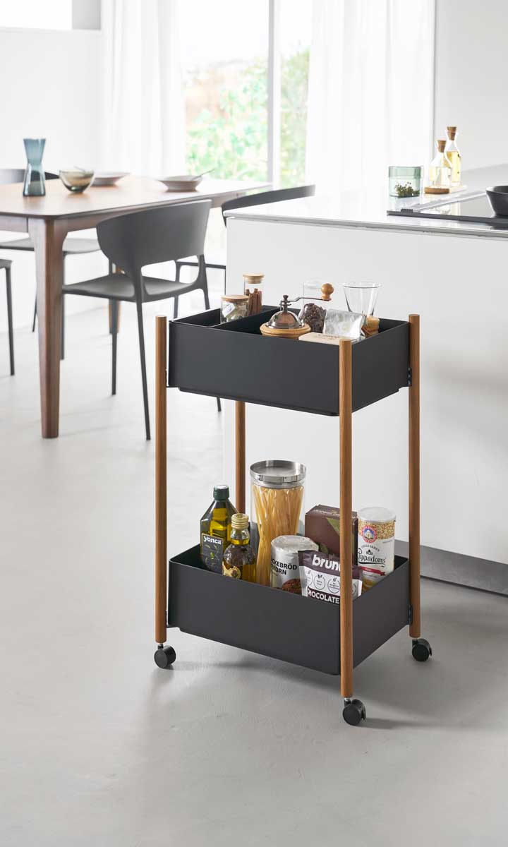 ・主な素材:スチール 粉体塗装/天然木 ウレタン樹脂塗装(支柱)/ABS樹脂(バスケット、小物トレー)/ナイロン(キャスター)