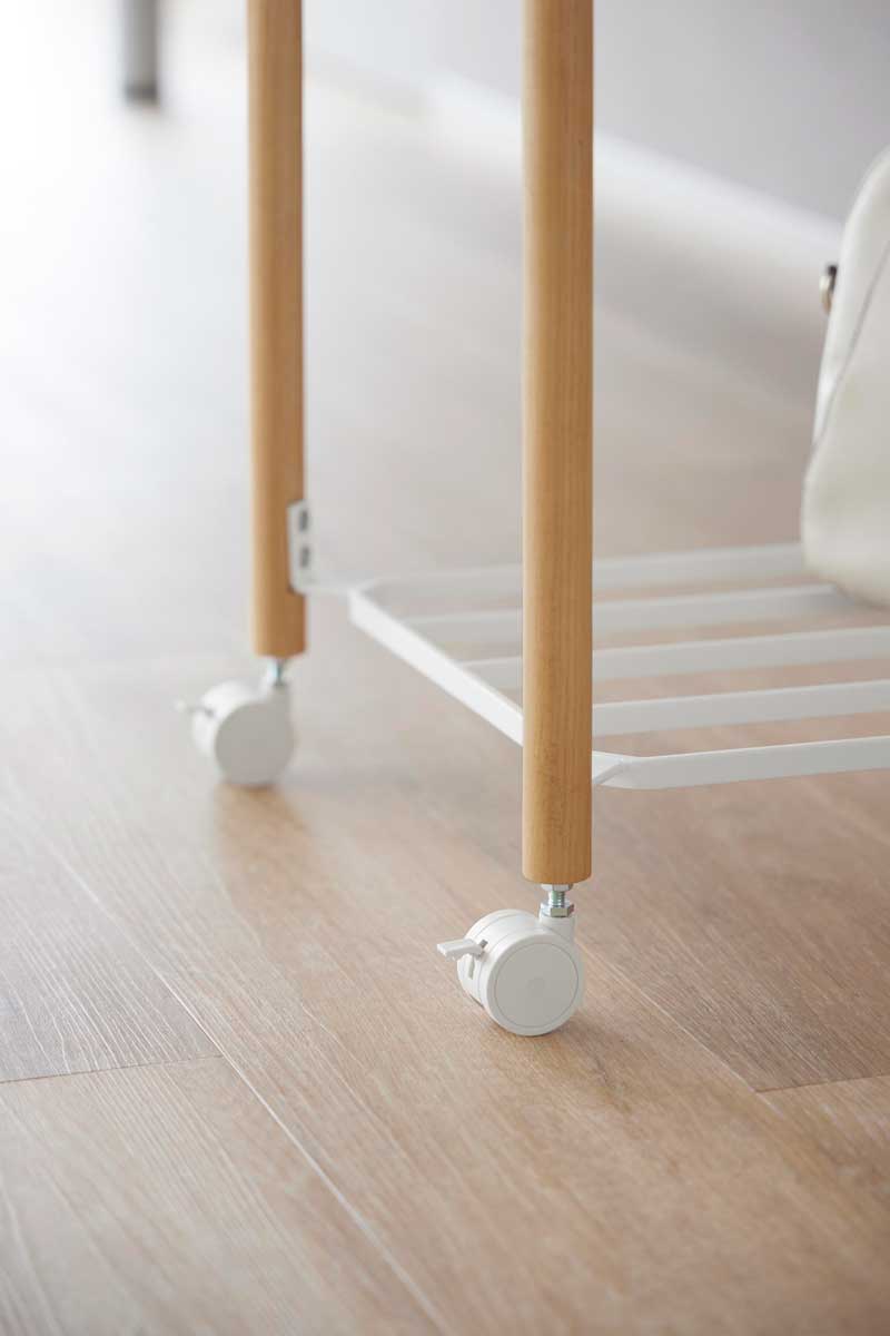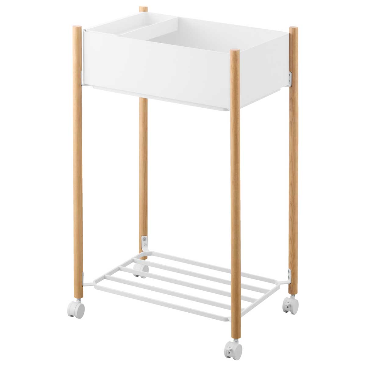 ・主な素材:スチール 粉体塗装/天然木 ウレタン樹脂塗装(支柱)/ABS樹脂(バスケット、小物トレー)/ナイロン(キャスター)