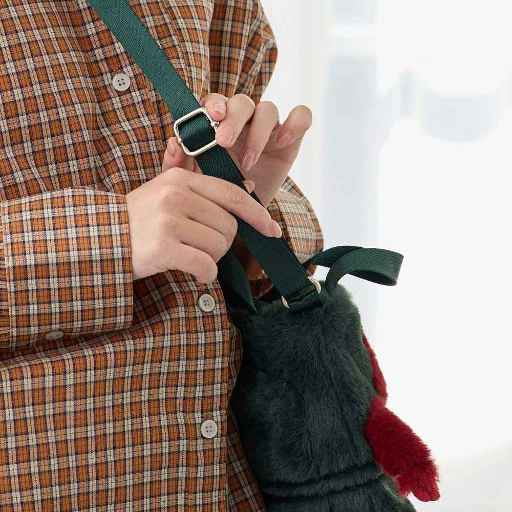 ミニクリプティッドがかわいい。ひとつひとつ異なる表情や毛並みが異なるミニクリプティッドたちと楽しいお出かけ。おしゃれのワンポイントに。ちょっとした用事など身軽にお出かけに。小さいながらも必要なものはしっかり収納できます。背面のルーポケットは、すぐ出したいハンカチやパスケースなどの収納に。ショルダーは長さ調整が可能で、お好きな長さで使えます。斜め掛け、肩掛け、手持ちと使用方法もバリエーション豊富です。