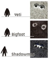 クリプティッドとは「クリプト(crypt)」は未確認動物または未確認生物のことです。Yeti(イエティ)は、別名:雪男、雪人で、ヒマラヤ山脈に住むといわれている未確認動物。全身が毛に覆われ、直立歩行するとされる。Bigfoot(ビッグフット)は、アメリカやカナダの森林に住むといわれている未確認生物。全身が毛に覆われ、身長2〜3メートルの巨体を持つとされる。Shadowman(シャドーマン)は、別名:シャドーピープル、シャドーパーソン。アメリカなど世界各地で目撃されている怪奇現象。人型の影のようなもの。動きが素早い。
