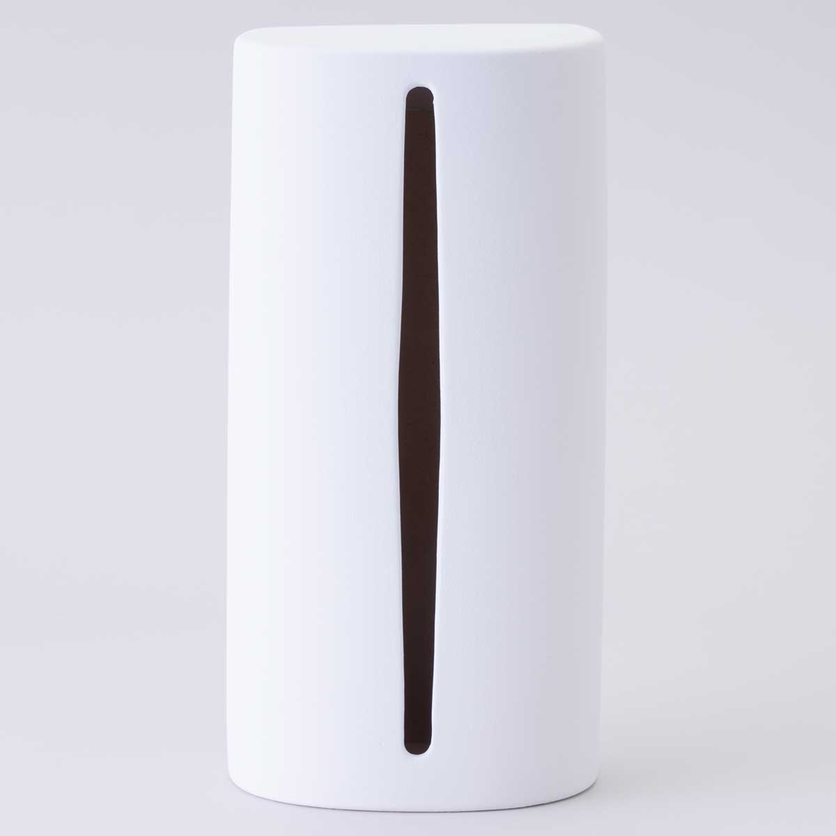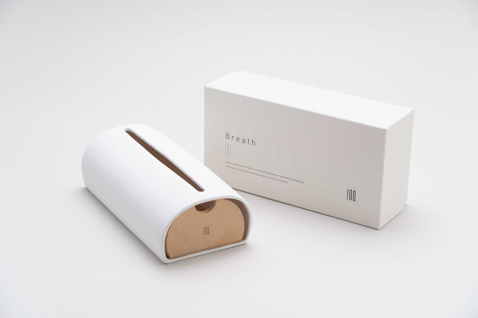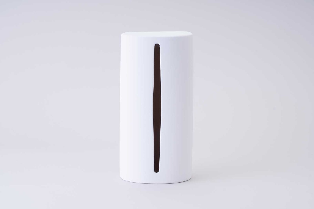 自然と吸発湿する特性を生かした、呼吸するペーパータオルボックスです。工業製品としての完成度の高さを求め試行錯誤の上、瀬戸焼の白雲陶器にたどりつきました。