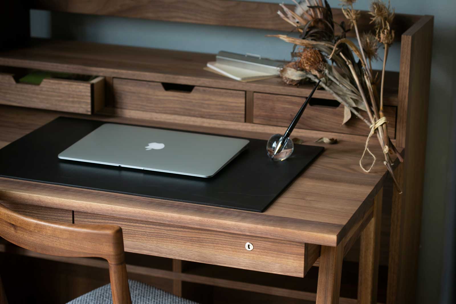 高級なイタリアンレザーの小口まで美しくガラスで磨き上げ、特殊な接着行程をする事で完全にフラットで無駄のないレザーマットが完成しました。