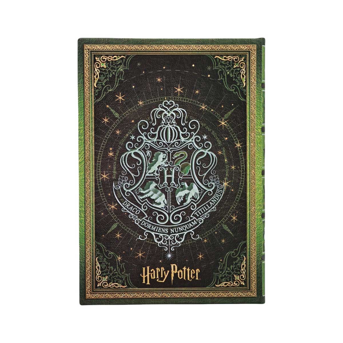 しばしば神秘に包まれ、野心、狡猾さ、プライドを特徴とするのがスリザリン寮です。ここの生徒たちは非常に競争心が強く、クィディッチの試合では、たびたび疑わしい戦法を用います。スリザリン生の資質は否定的にとらわれがちですが、実はもっと奥が深く、彼らのプライドは健全な自尊心の表れなのです。この新しいハリー・ポッター・コレクションは、ホグワーツ魔法魔術学校に舞い戻る良い機会となるでしょう。野心的な夢を書くにしろ、次なる狡猾な計画を立てるにしろ、本ノートは自身のスリザリン的野心を探求するのにぴったりな場所です。