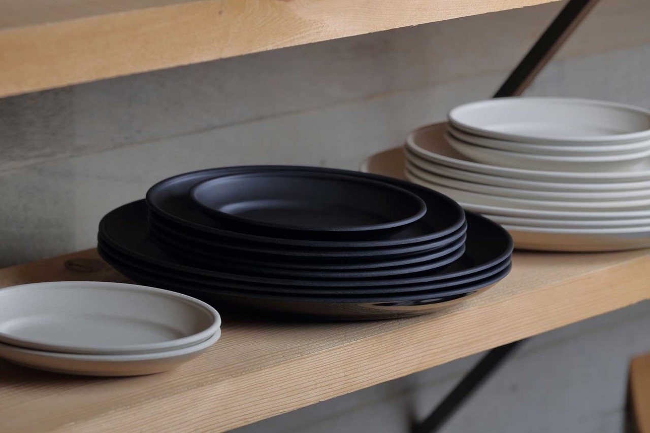 これだけでいい、日常使いのスタンダード。昭和の洋食器を思わせるオーバル皿を、割れにくく、欠けにくい食器として、b fiber素材で現代に再現。料理に合わせて使い分けできる、17/23/30cmの3サイス(S/M/L)を展開。盛り付けが苦手でも、料理が自然と映えるオーバルフォルムで、丸皿よりもスペースを取らず、お盆やトレイにも並べやすいかたち。日常の食卓からおもてなしまで、幅広く活躍します。