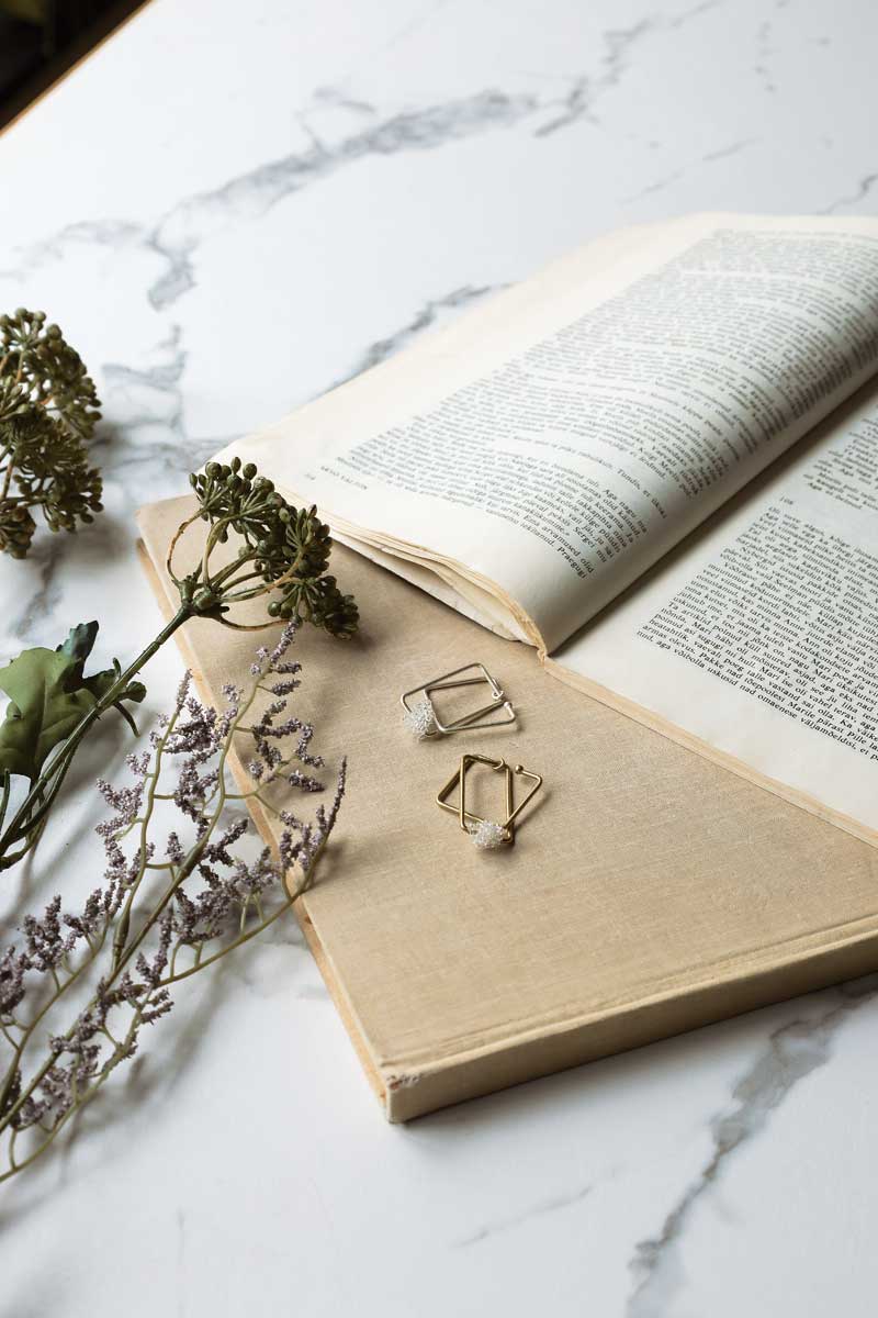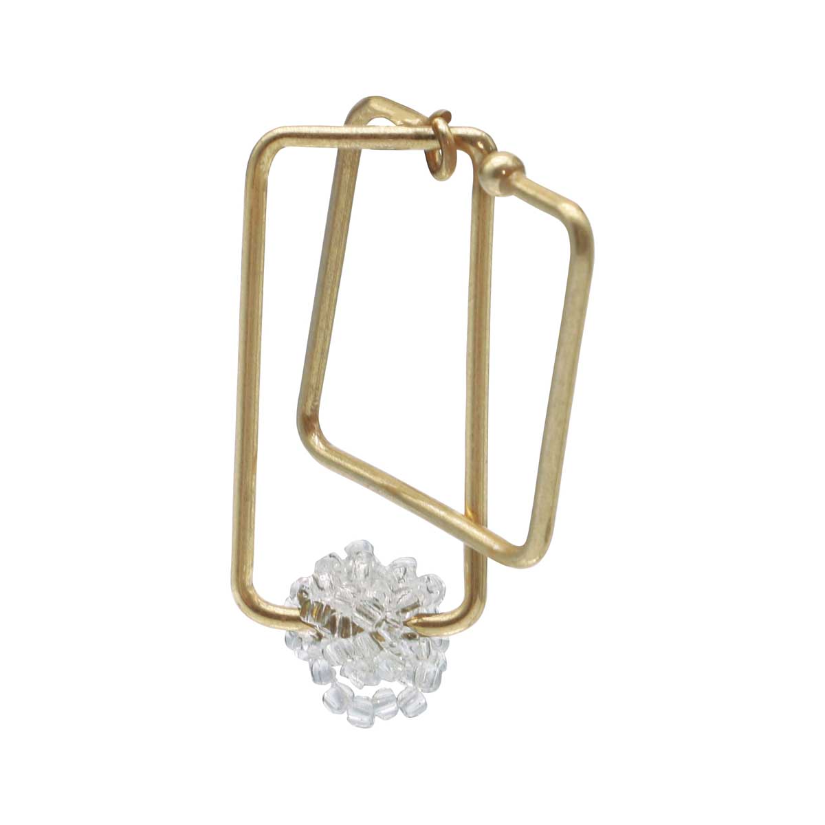お祝いやご褒美、門出のシーンを表現したsui ‐スイ‐ series。マットな古代金真鍮は角のはっきりとした、つやっとした透明ビーズは細かく繊細に無機質に。そんなワードを思い浮かべながら、形や色合いのコントラストを存分に活かしました。
