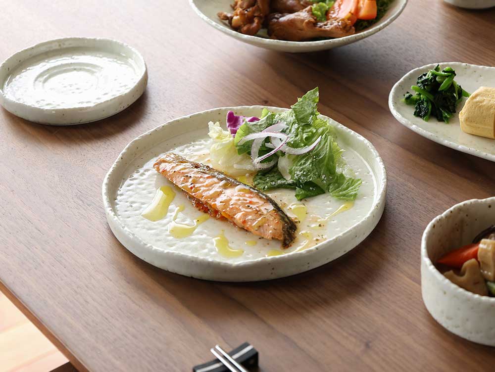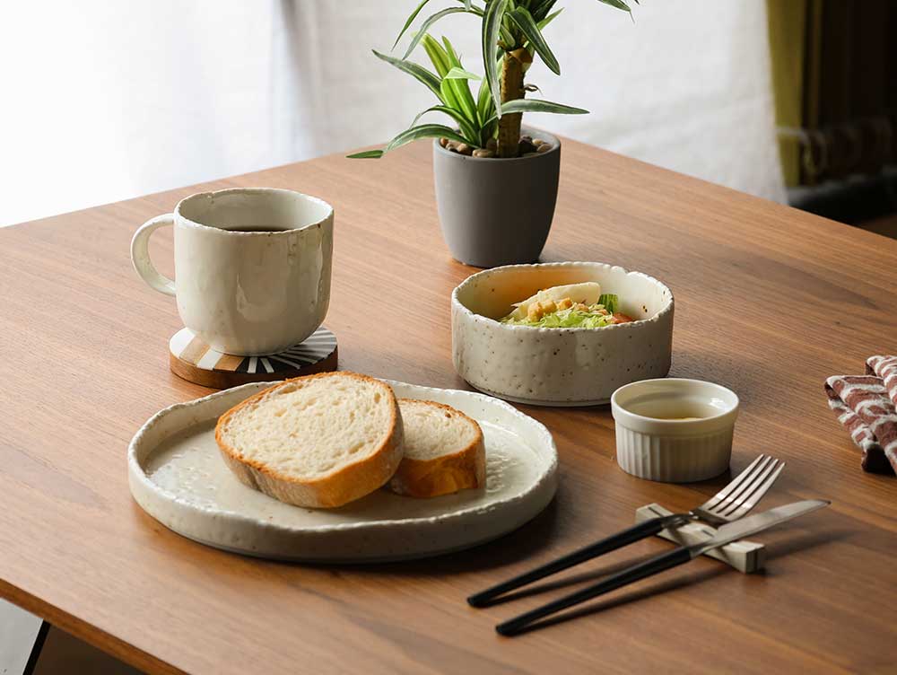 雪の暖かさを表現した陶器、FUWARi -フワリ-のサークルプレート。サークルプレートは3サイズ展開でご用意。平らな形状なので、面積も十分に使えて和・洋どちらの食卓にも万能なアイテムです。このページで販売のMサイズは23cm。ワンプレート皿やメインディッシュ皿、パスタ皿におすすめな使いやすい中皿サイズです。