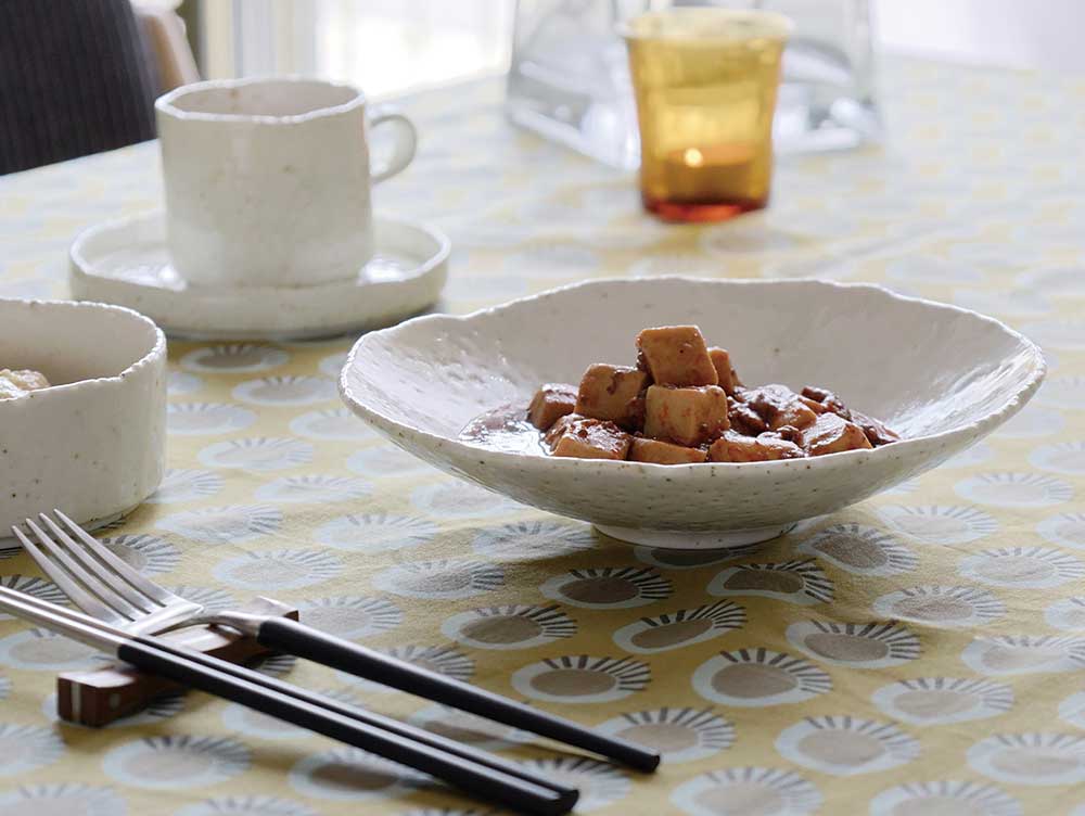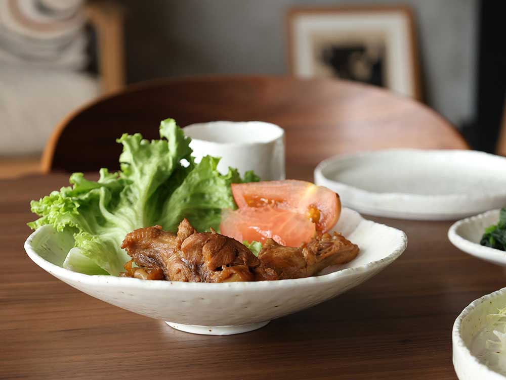 雪の暖かさを表現した陶器、FUWARi -フワリ-のメインボウル。傾斜が美しく安心感のある深さなので、汁気のあるメインのおかずにぴったり。動きのあるフォルムが、さまざまな表情をみせてくれます。和食にも洋食にも中華にも合う万能アイテムで、料理するのも楽しくなりそうです。