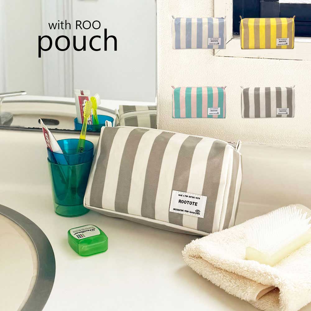 2026新作 ポーチ 旅行ポーチ 化粧ポーチ ROOTOTE with ROO pouch 3532 ルートート WR.ポーチ.ラミネート-W グレー・ホワイト