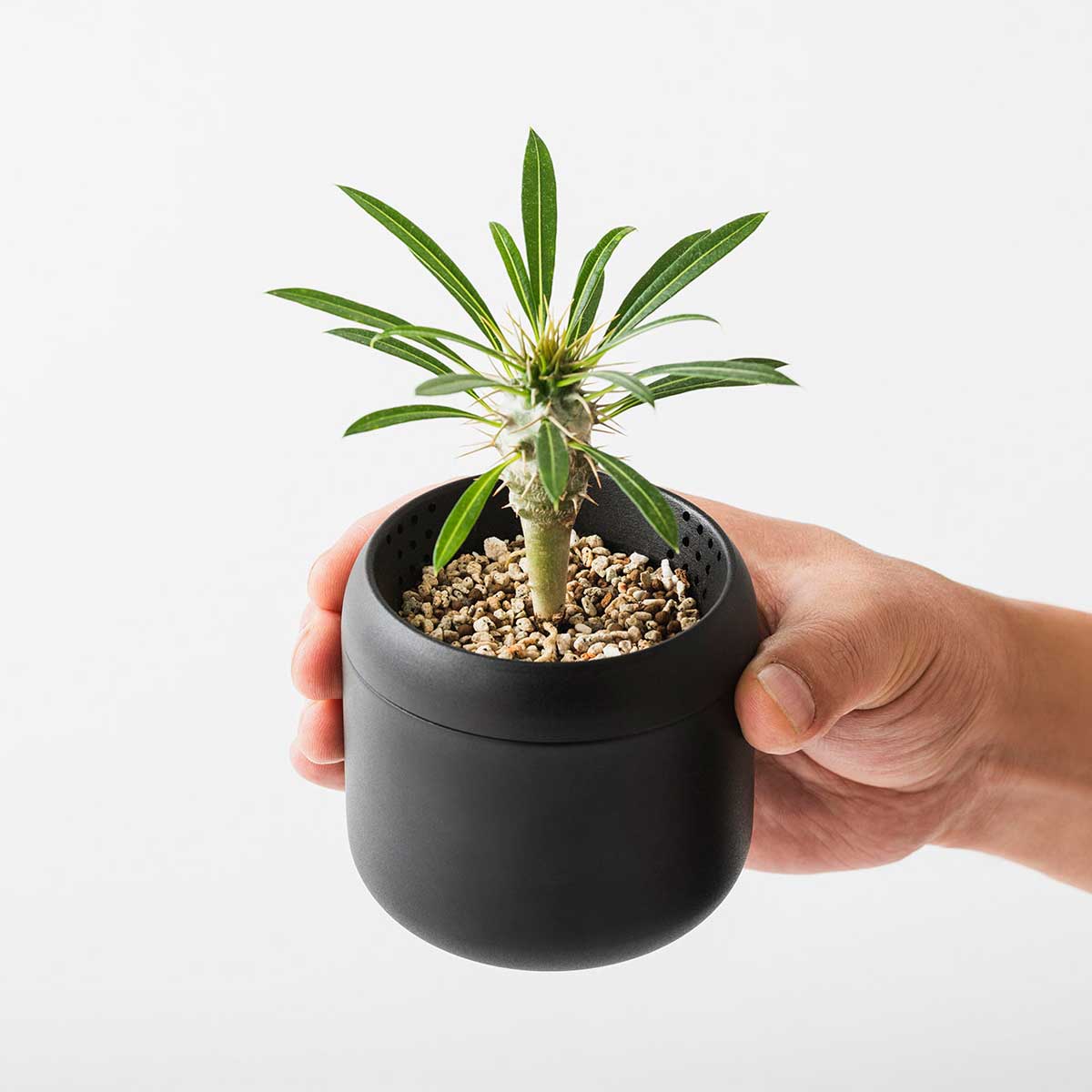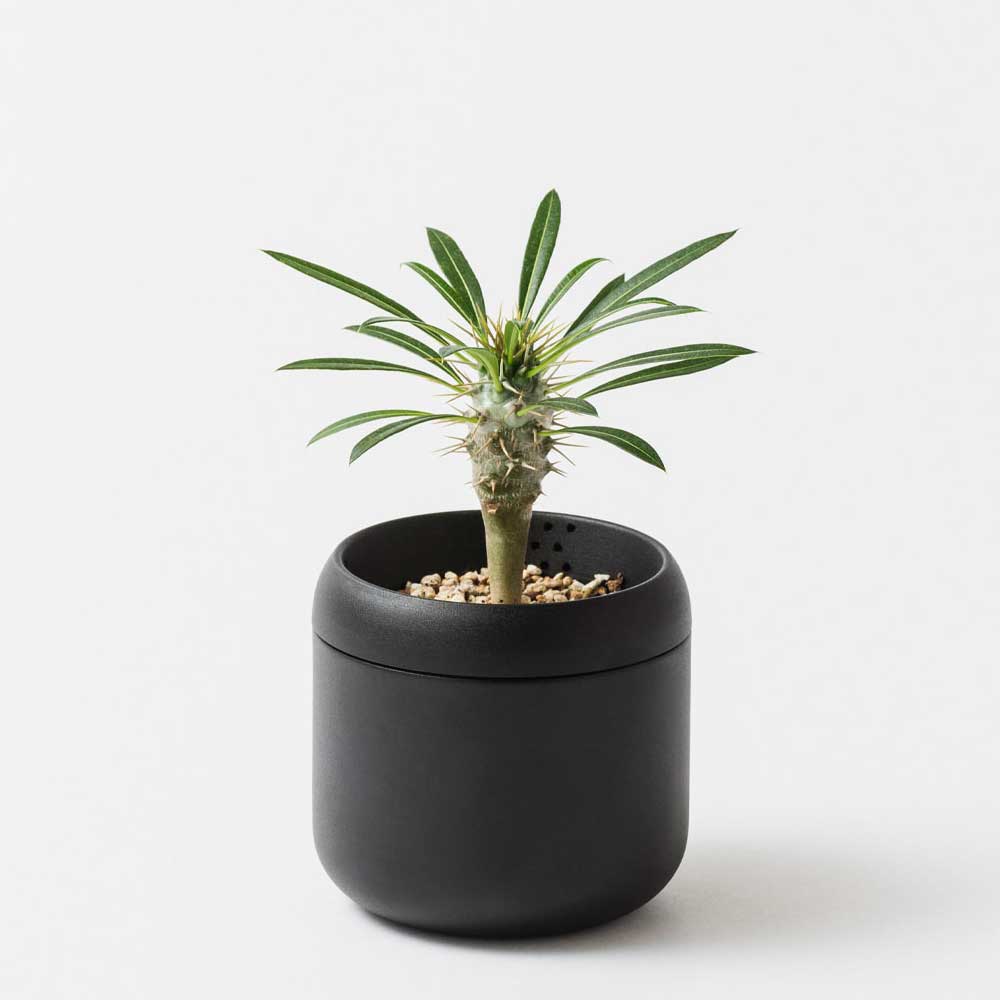 鉢と受け皿が一体化し、片手でサっと持ち運べるように、アルミ素材を採用。軽量さも実現しています。大きさは植物に合わせて選べる2つのサイズ。一般的な小型の鉢と同じく、2号(内径6cm)と3号(内径9cm)の2つのサイズをご用意。お仕事机などで小ぶりに使いたい時は2号、少しゆったりした場所は3号と、シチュエーションに合わせてセレクト。