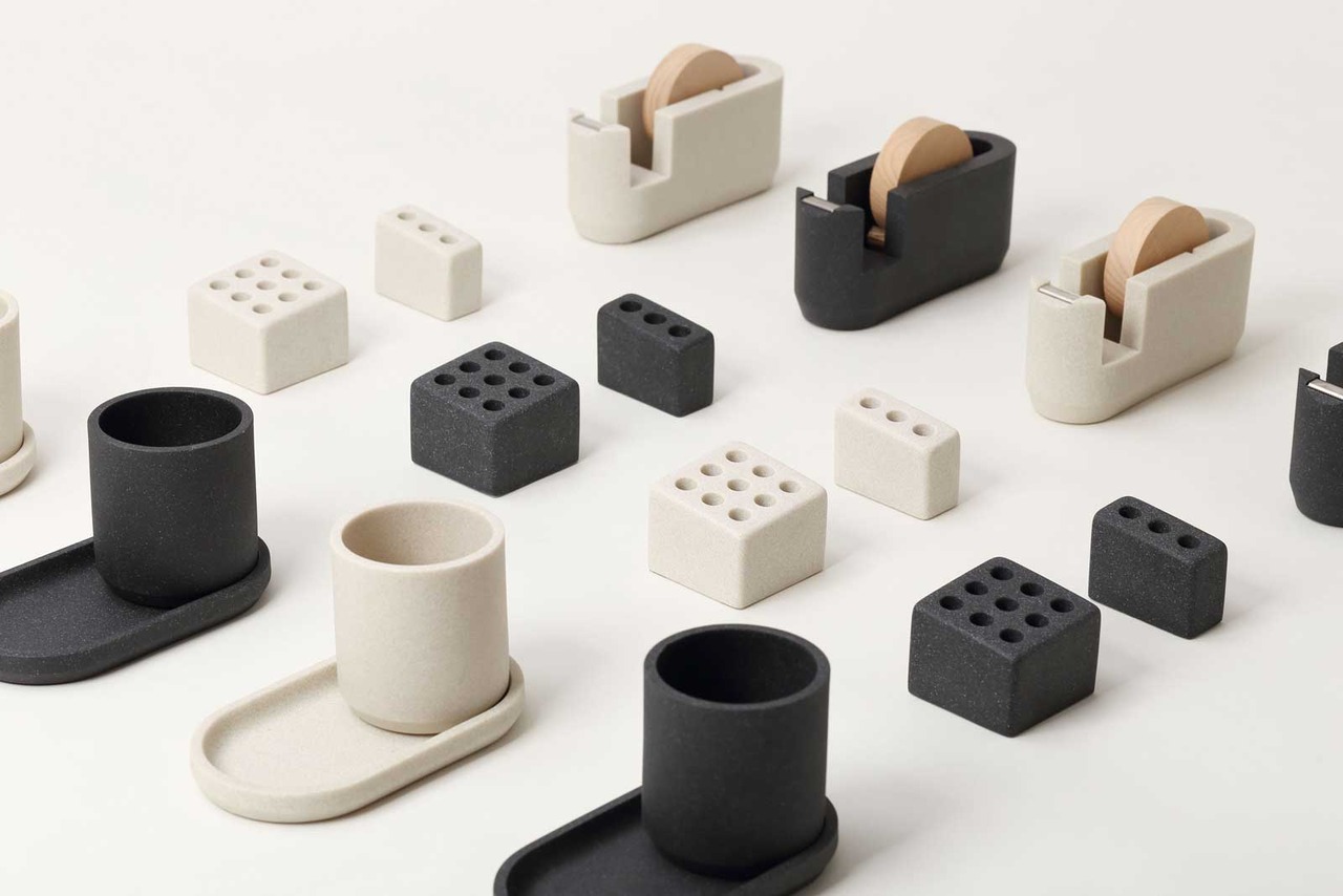 エシカルなPOLYWEAR(ポリウェア)素材。二液性で固形化するポリエステル樹脂と天然石のパウダーを混ぜて作られています。二酸化炭素の排出が少ない製法で作られた、環境にやさしいサスティナブルな製品です。質感は石の表情を感じるマット仕上げ。適度なザラつきを持ちながらも、ペンを傷つけにくい滑らかな手触りに仕上げています。