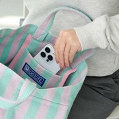 見た目はコンパクトなのに、驚くほどの収納力。安定感のあるワイドな丸底。お財布、ポーチ、ランチボックスなど、必要なものが収まります。ボトルホルダーもあるので、ボトルや折りたたみ傘もすっきり収納。バッグの中で倒れる心配もありません。デザインのアクセントでありながら、ROOTOTEならではのルーポケット。よく使うスマホやリップが、サッと取り出せてスムーズ。