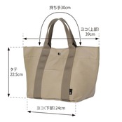 ・主な素材:ポリエステル、綿(表地)/PEVA加工(裏地)/ポリエステル(持ち手)/マグネットホック(留め具)