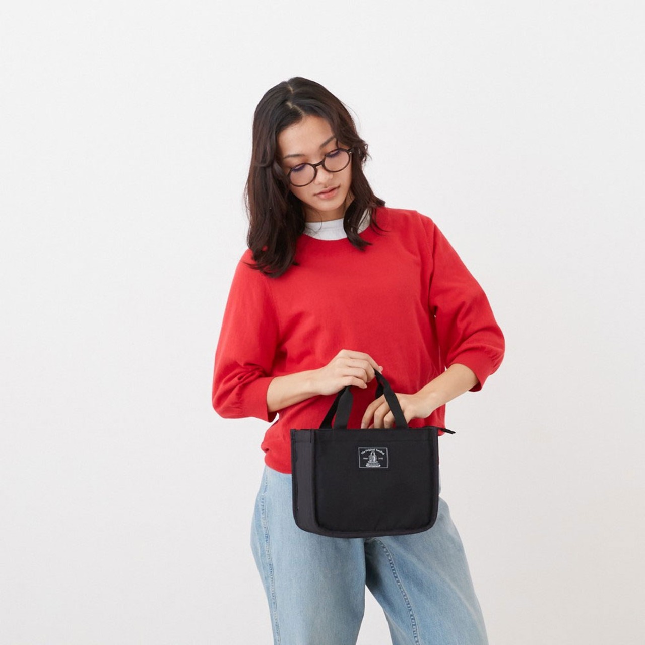 毎日のお弁当に便利なサイズ。幅20cm程度のスリムランチBOXも入ります。軽くて丸洗いできて、簡易保冷の使い勝手の良いつくりになっています。トップファスナーがついているので、中身がこぼれ落ちる心配もありません。