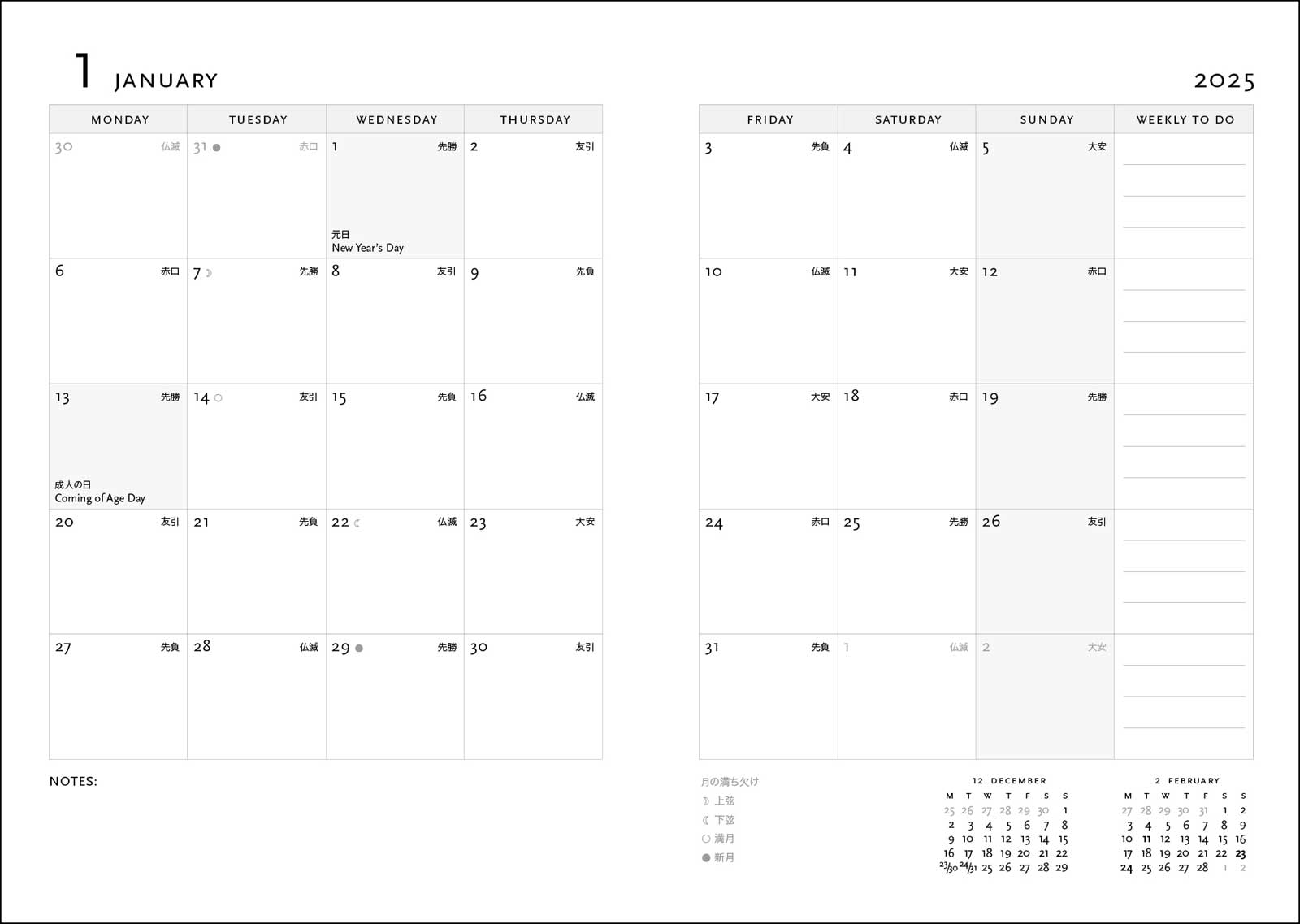 ・その他:360°折り返し可能なソフトカバー。世界祝祭日掲載、六曜、月齢などが日本語で掲載された日本仕様となっています。