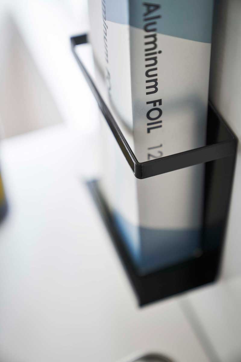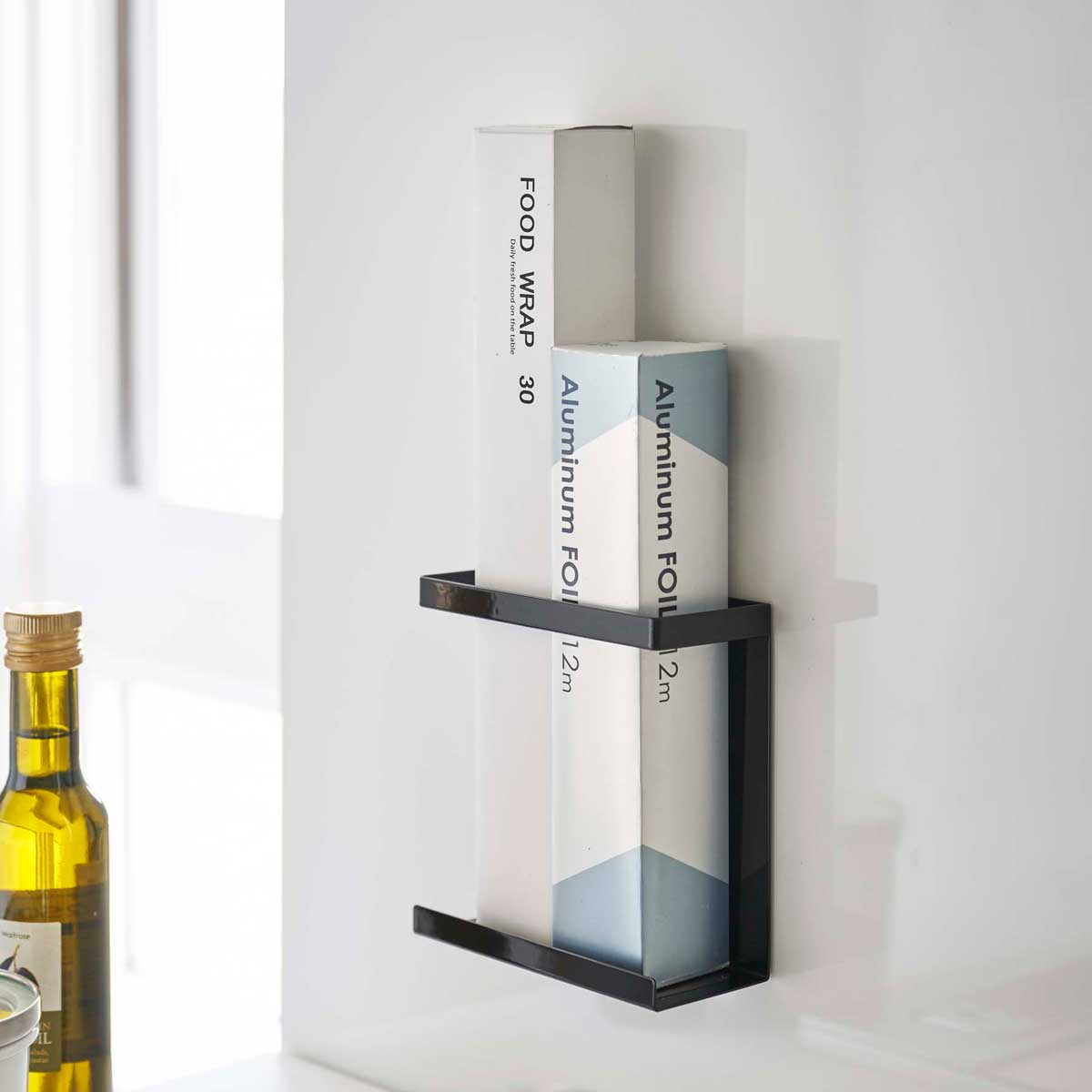 マグネットがつくスチール壁面に簡単取り付けのラップホルダーです。冷蔵庫側面にマグネットで簡単取り付けのラップホルダー。