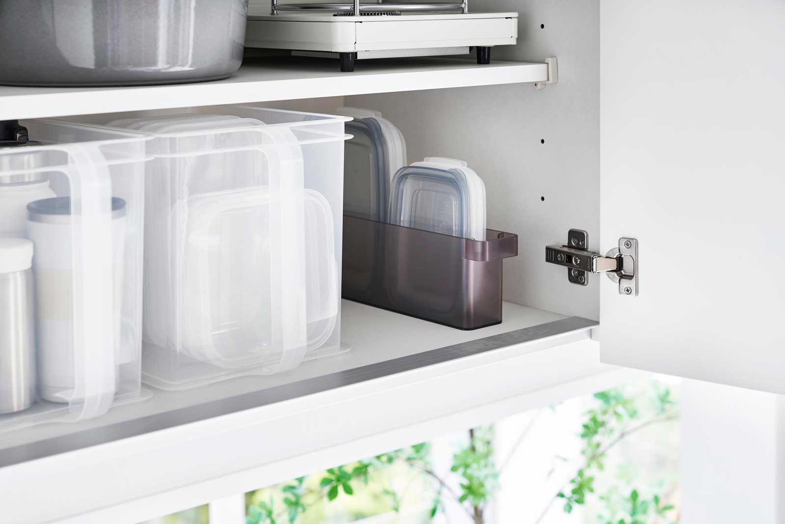 スリムなので種類別でドリンクを並べて収納するのもおすすめです。斜めトレーを外せば冷蔵庫内の高さのない上段にも収納可能。食器棚やストックルームなど省スペースでの整理整頓にもぴったりです。