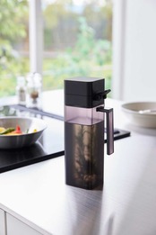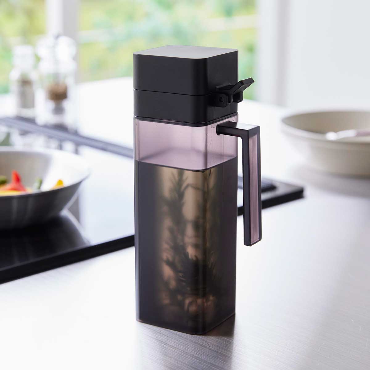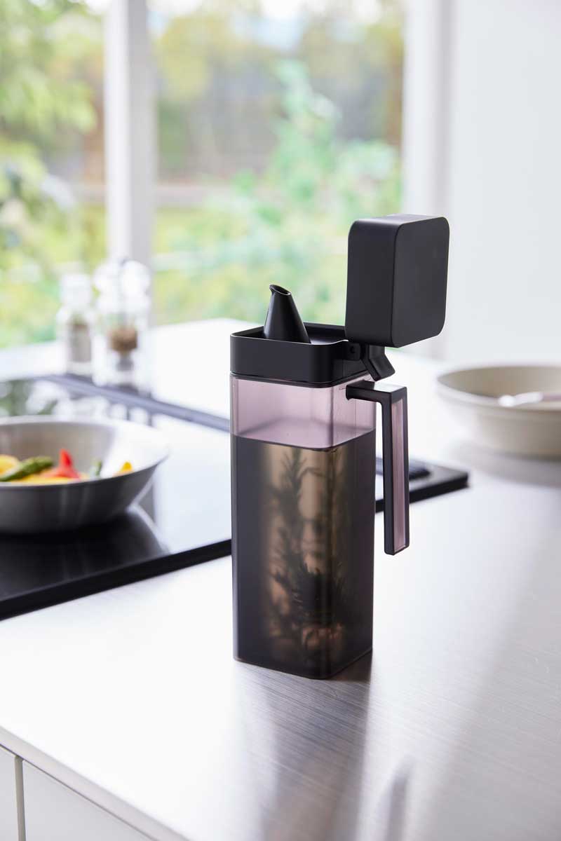 蓋は親指で簡単に開閉でき、開いた状態を保ちながら注ぐことができます。蓋は取り外せるので、詰め替えやお手入れが簡単です。
